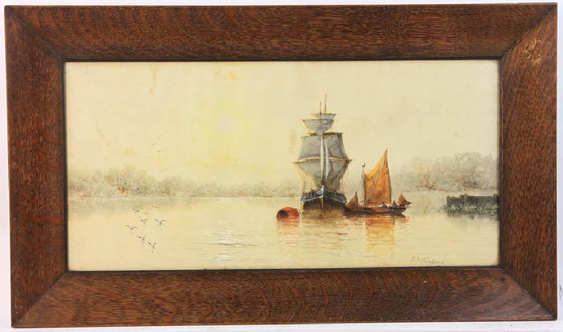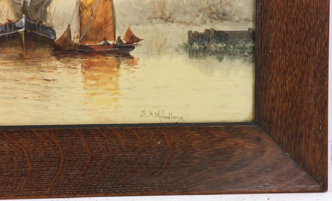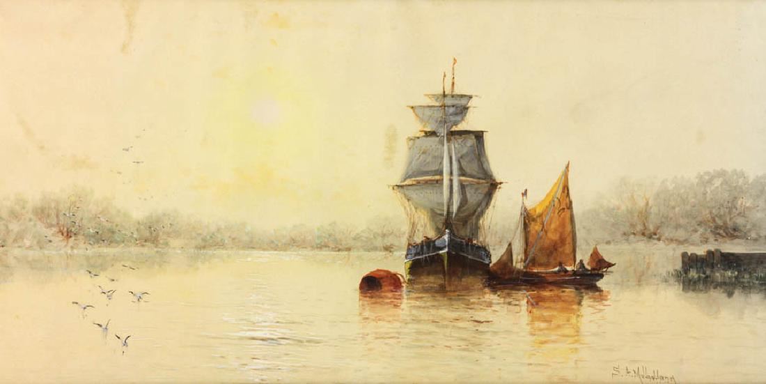 S. A. Mulholland, sail boats, watercolor, signed, in oak frame, 16" x 28".