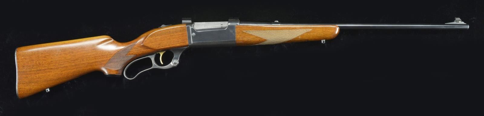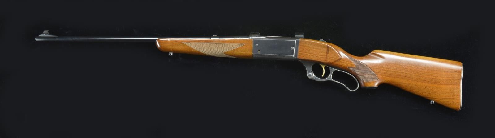 Cal. 308 Win. S# 1016075 (1961). Bbl. 22" rnd. w/ Chicopee Falls, Mass. address. Ramp mounted blade front sight & filler in rear dovetail. Action features jeweled bolt, rotary mag. w/ oval viewing window, cocking indicator, sliding top tang safety, gold finished trigger, case colored lever & drilled for Weaver "14" & "19" scope bases. Checkered forearm & walnut pistol grip stock has hard rubber grip cap, swivel bases & grooved steel buttplate. CONDITION: good to very good overall condition having carry wear & marks commensurate w/ use. Very good bore. (22-1898/MD). CURIO. $400-600.