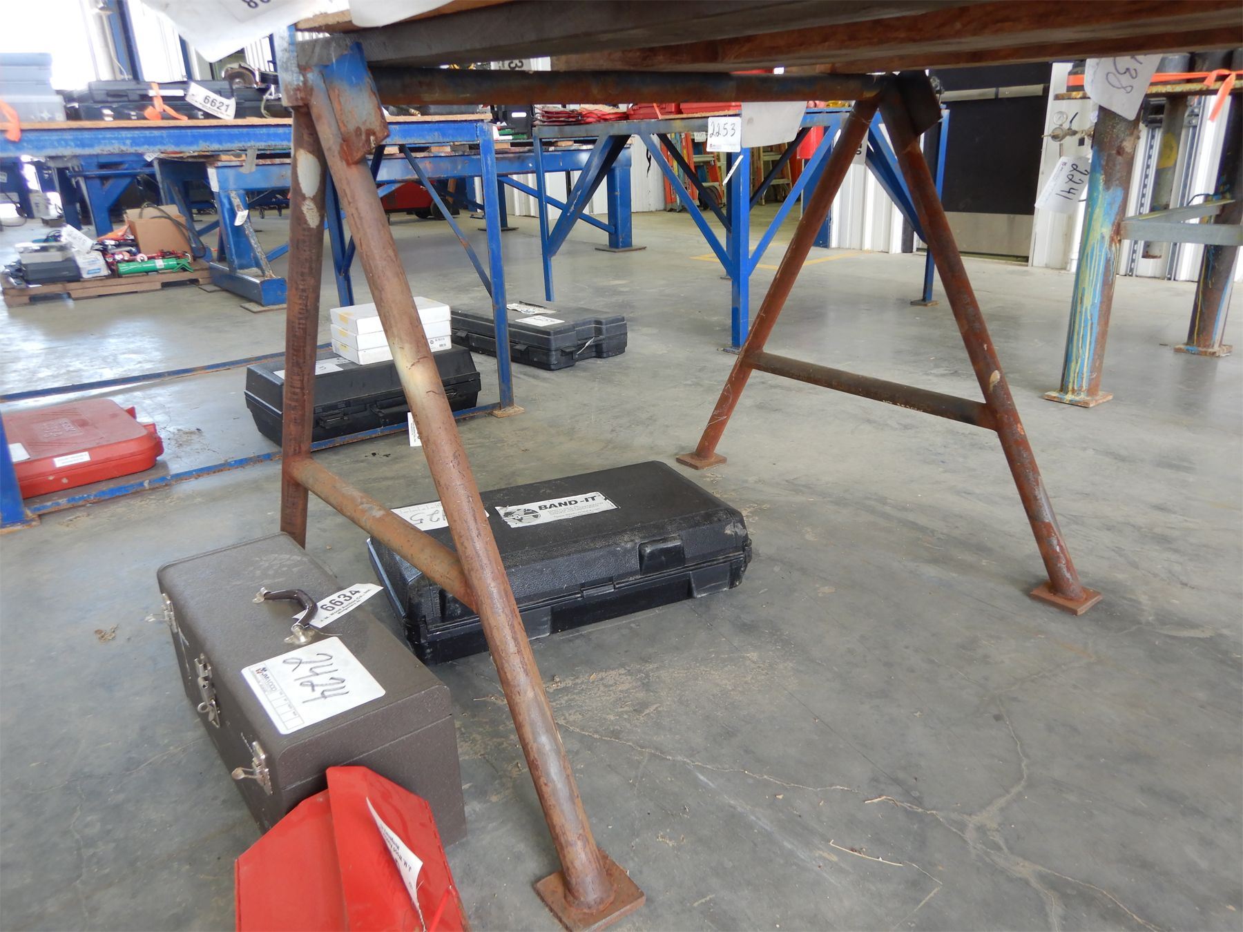 (2) metal saw horses, 49"w x 89"h