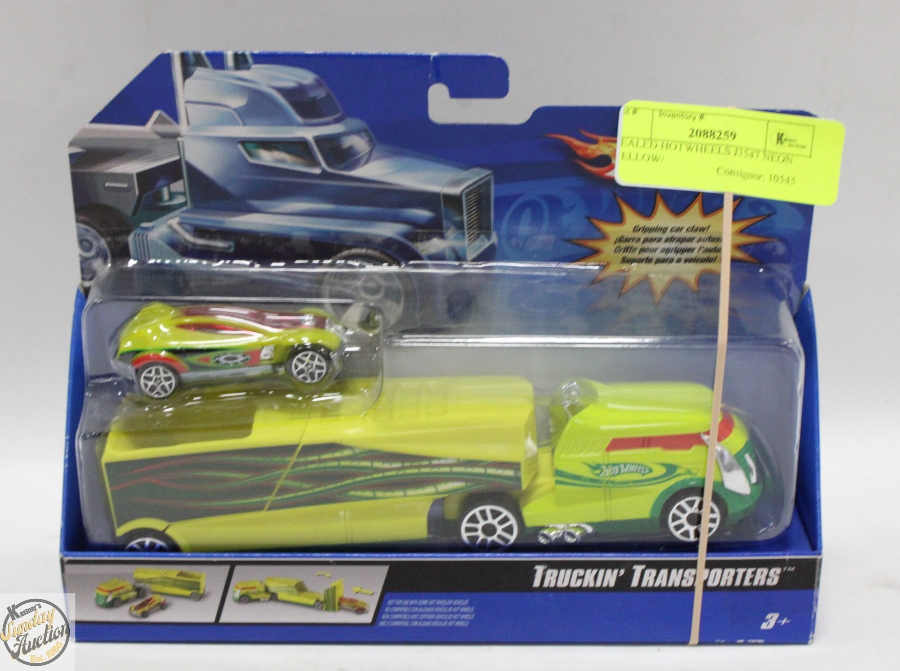 GREEN TRUCKIN' TRANSPORTERS VEHICLE WITH GRIPPING CAR CLAW **ALL ITEMS MUST BE REMOVED BY 5PM SATURDAY, AUGUST 9 2025. ALL REMAINING ITEMS WILL BE SUBJECT TO A $6.00 PER DAY STORAGE CHARGE. ANY ITEMS REMAINING AFTER MONDAY, AUGUST 25TH 2025 WILL BE CONSIDERED FORFEITED. NO REFUNDS WILL BE ISSUED FOR FORFEITED ITEMS. TO SCHEDULE A PICK UP APPOINTMENT CLICK HERE