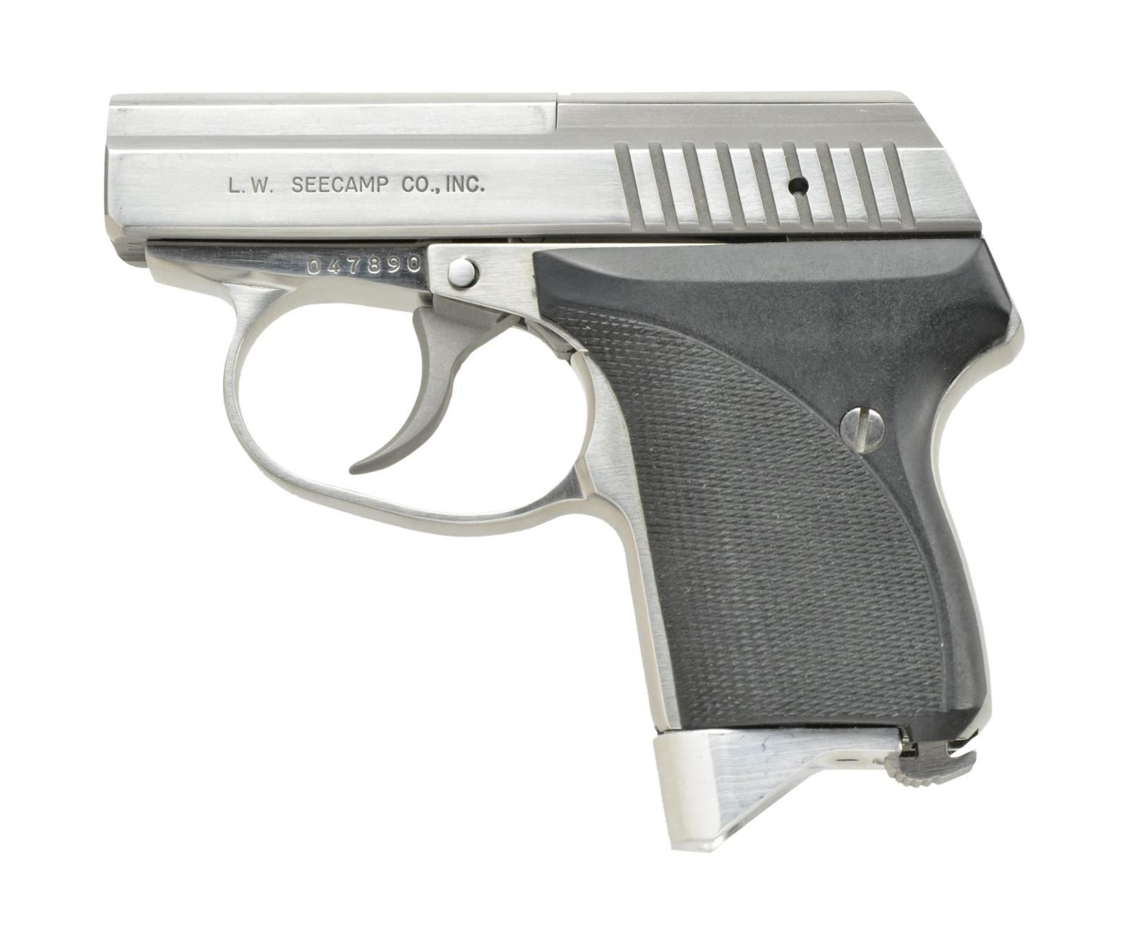 Cal. 32 ACP. S# 047890. Bbl. 2.06. Ultra compact hideout pistol designed for Winchester Silvertip ammo only. Stainless finish w/out sights. Checkered black plastic nylon grips. MAGS: 3 - 6 rd. UNATTACHED ACCESSORIES: manual. CONDITION: near excellent overall including bore. (22-1767/MD). MODERN. $300-500.