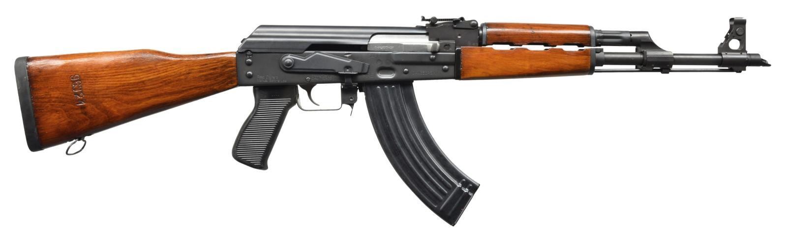 Cal. 7.62x39. S# 0-PAP007426. Bbl. 16". A Serbian Zastava as imported through CAI in more traditional AK47 furniture. Orange red hardwood w/ a blued finish on all exposed metal components. Traditional left hand threaded muzzle terminated w/ proper slant brake. Protected post front sight at muzzle void of bayonet lug. Tangent style rear sight marked to 1000m. Scope mount on left side of reinforced stamped receiver. Right side controls. Black plastic ribbed pistol grip. Tapco G2 trigger. On board cleaning rod & left side sling swivel at gas block w/ corresponding rear swivel at 6 o’clock on shoulder stock. MAGS: 1-30 rd. metal mag. UNATTACHED ACCESSORIES: spare checkered pistol grip. CONDITION: finish on all metal surfaces complete & consistent w/ thinning in areas of mechanical intervention as would be expected. Wood being repurposed from an original military rifle has time-earned blemishing but nothing that appears to influence structural integrity. Bore is shiny w/ strong rifling. Fire control group appears to function correctly when cycled by hand. (21-724/JZ). MODERN. $500-900.