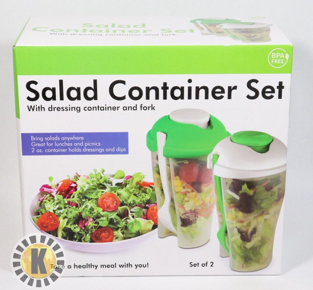 SET OF TWO NEW SALAD CONTAINER SET (WITH BUILT IN
