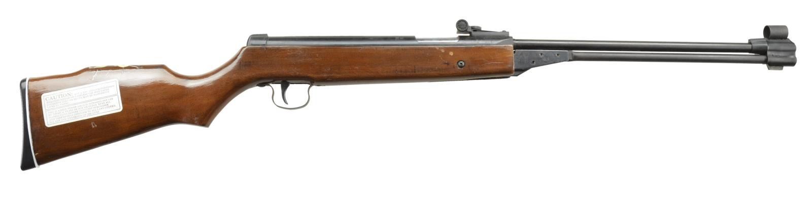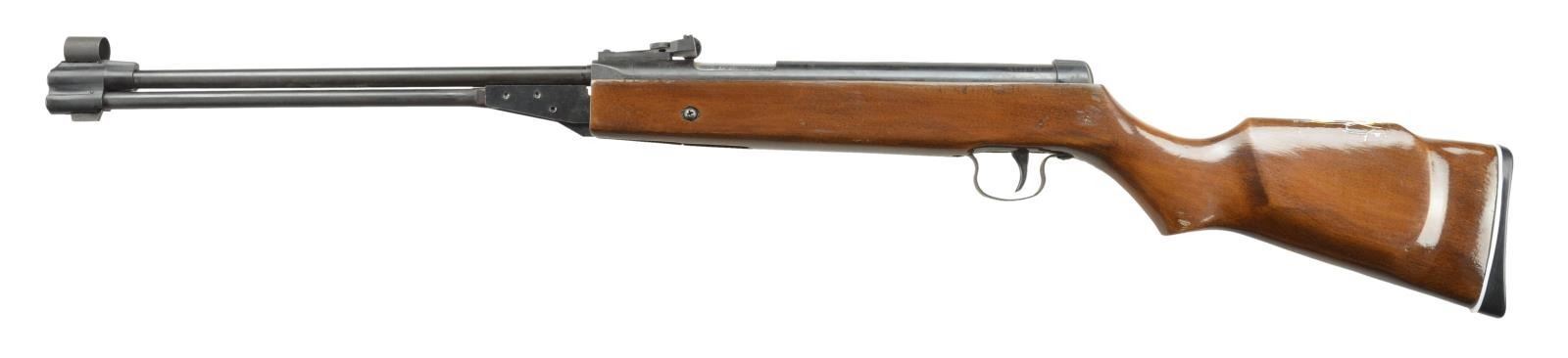 Cal. .177. S# N302148. Bbl. 18" rifled w/ blade front & adj. rear. sights. Spring pistol. Underlever cocking. Hardwood stock w/ previous owner labels taped onto Monte Carlo. UNATTACHED ACCESORIES: Box w/ appropriate label containing scope in box & box of pellets. CONDITION: Good plus overall w/ wear & marks. PROVENANCE: From the Collection of Thomas B. Harper Jr. (02-16526/MD). $75-150.