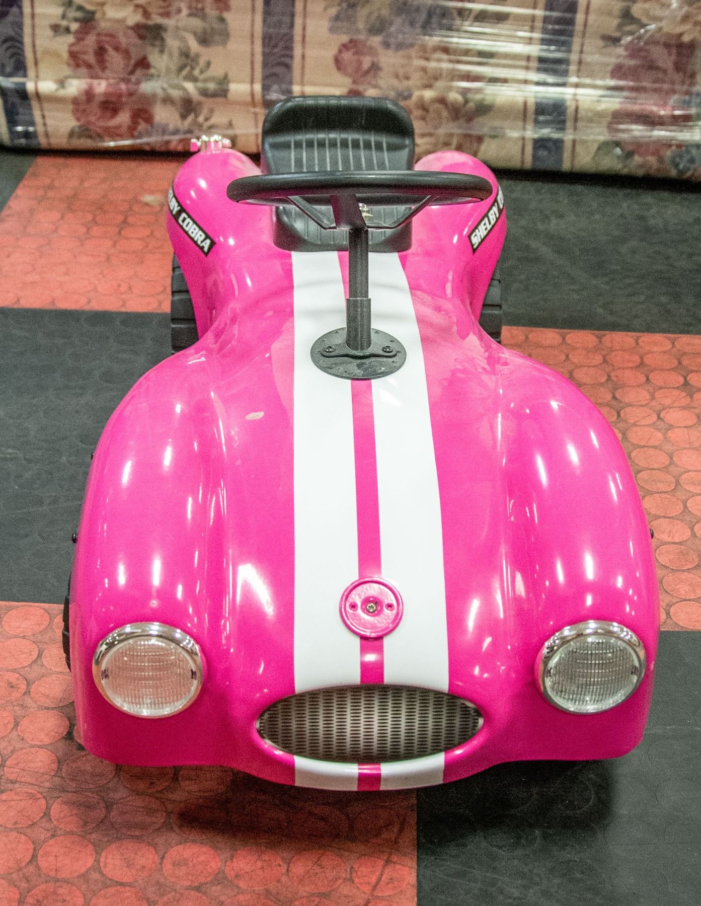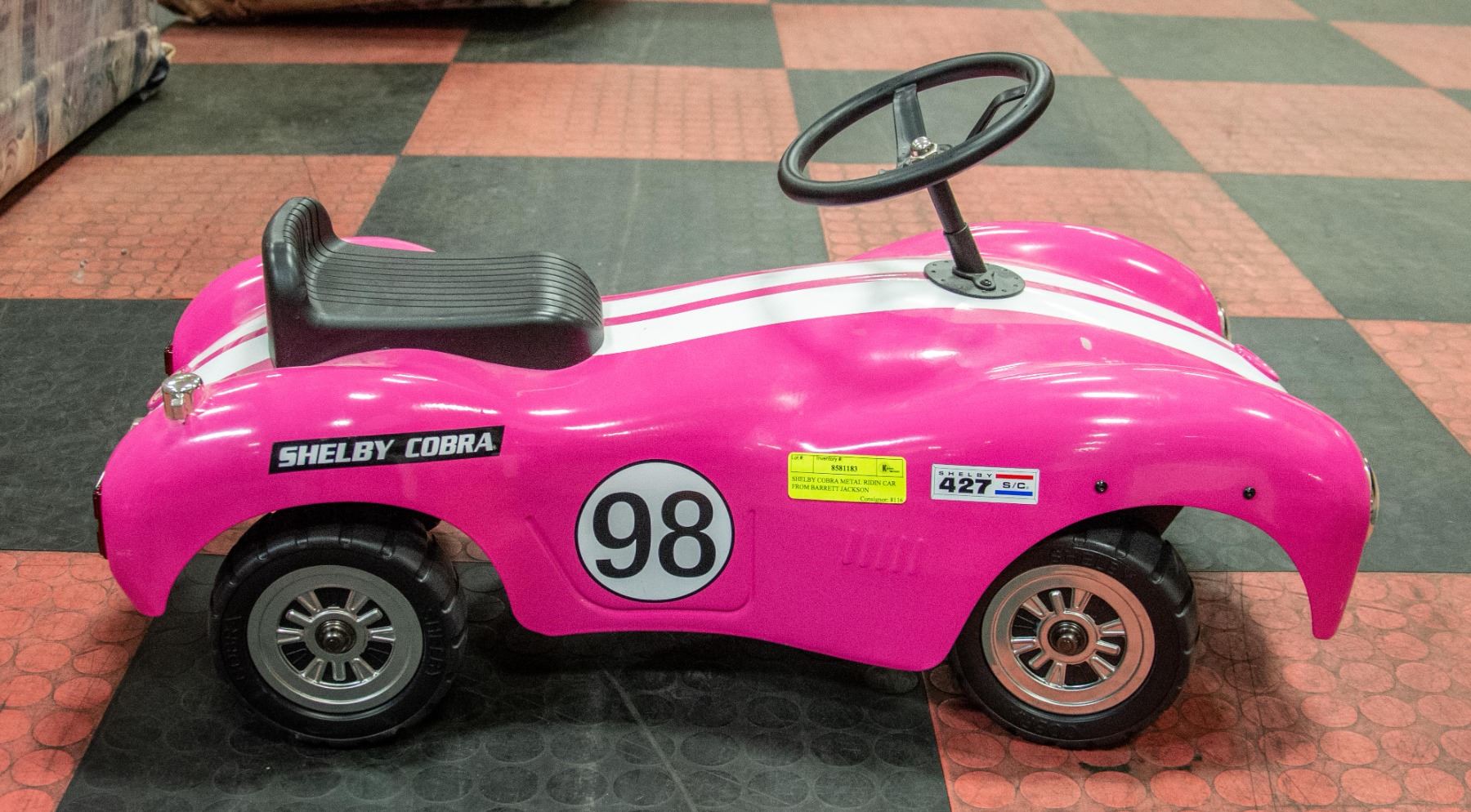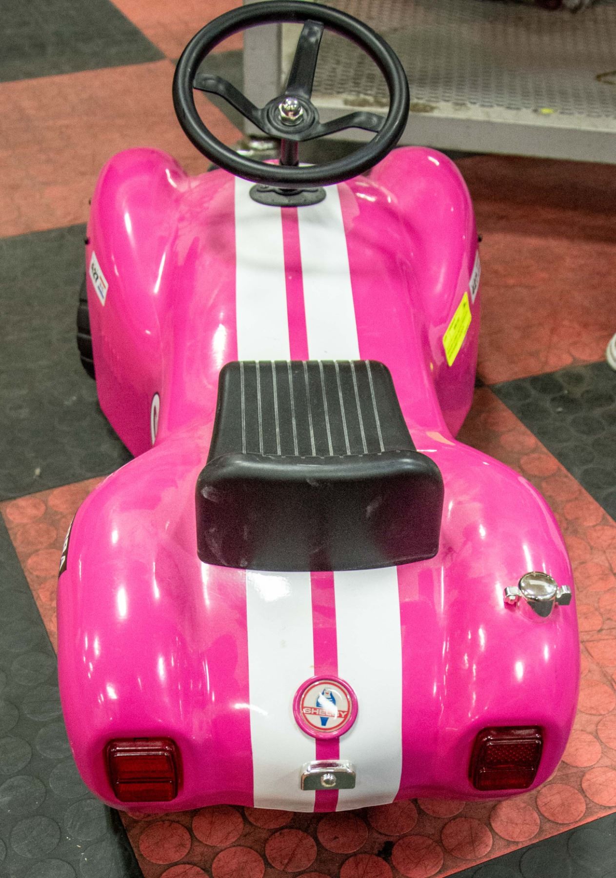 SILENT AUCTION ITEM FROM BARRETT JACKSON AUCTION KIDS SIZE METAL HOT PINK SHELBY COBRA CAR