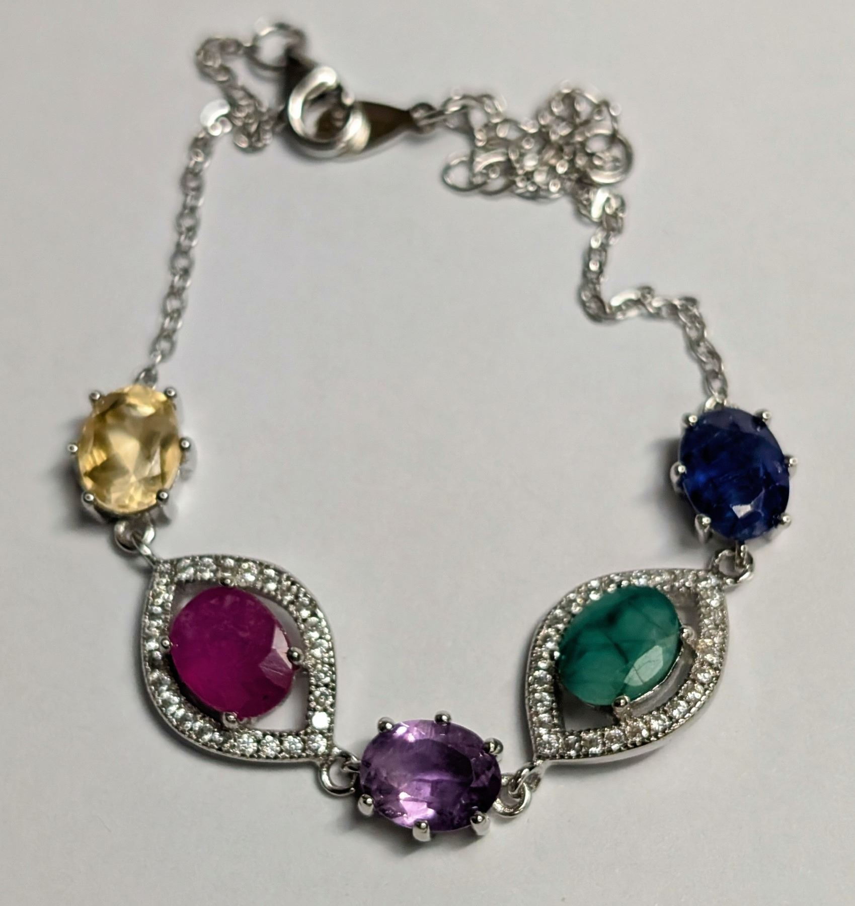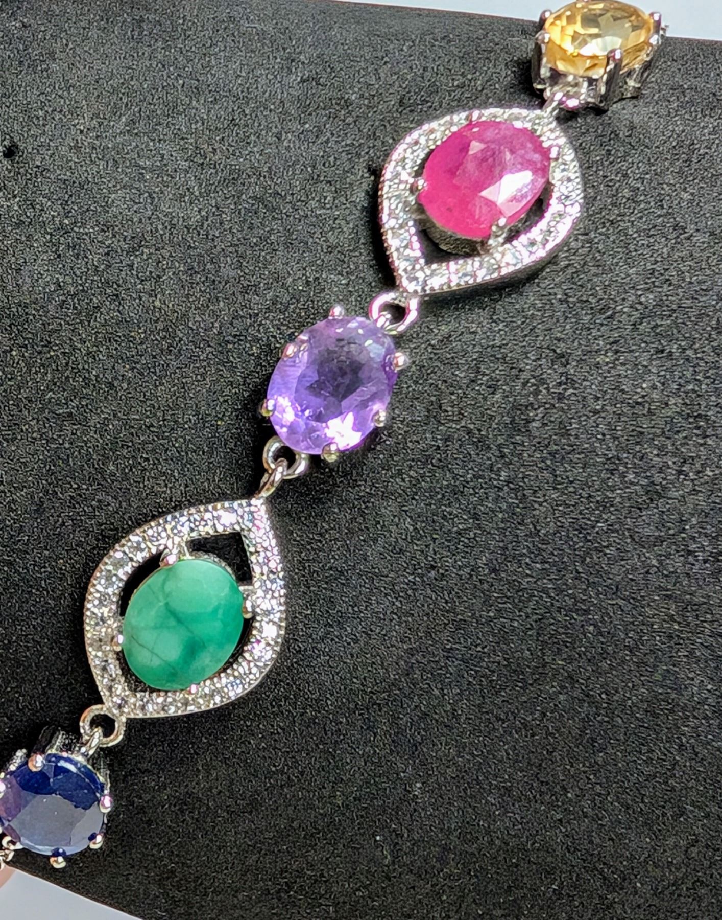 SILVER 5G RUBY,SAPPHIRE,EMARALD,AMETHYST BRACELET