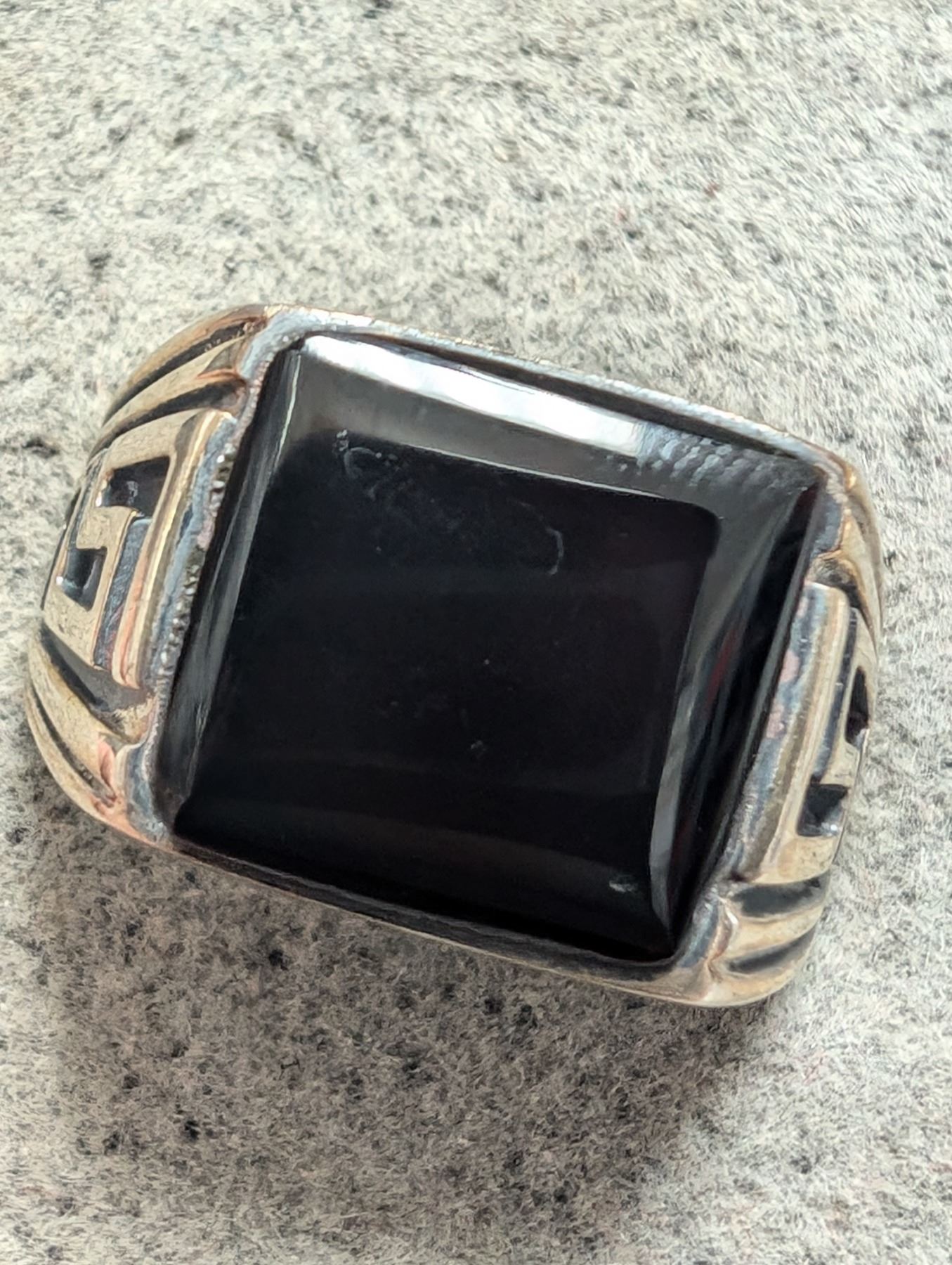 SILVER (9.5G) BLACK ONYX RING SZ 10.75