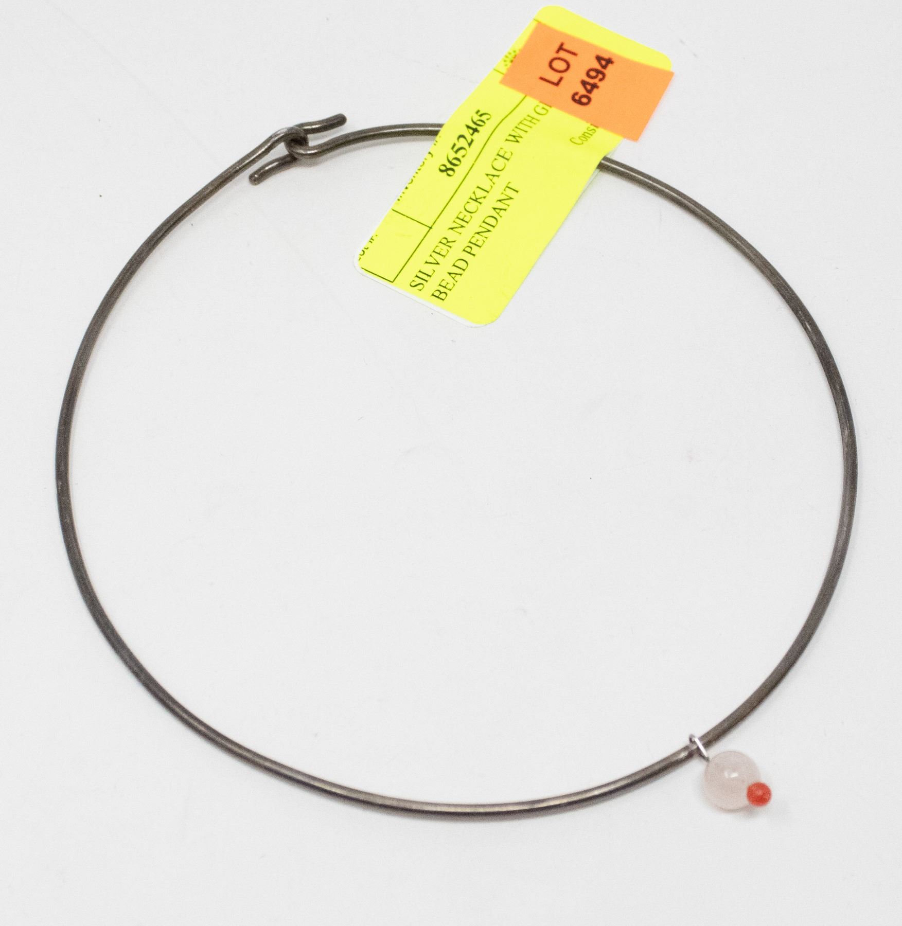 SILVER NECKLACE WITH GLASS BEAD PENDANT