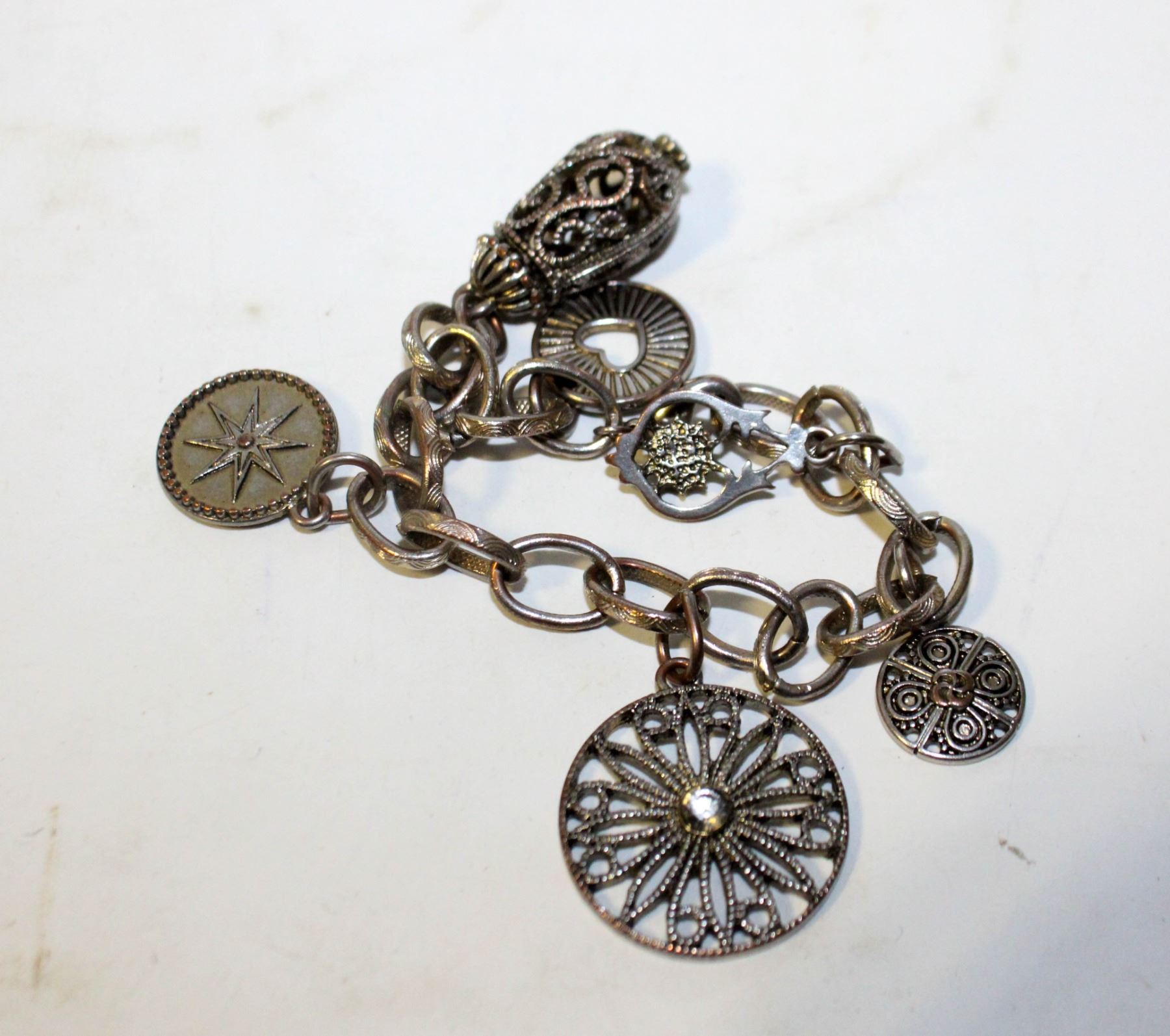 SILVER TONE CHARM BRACELET