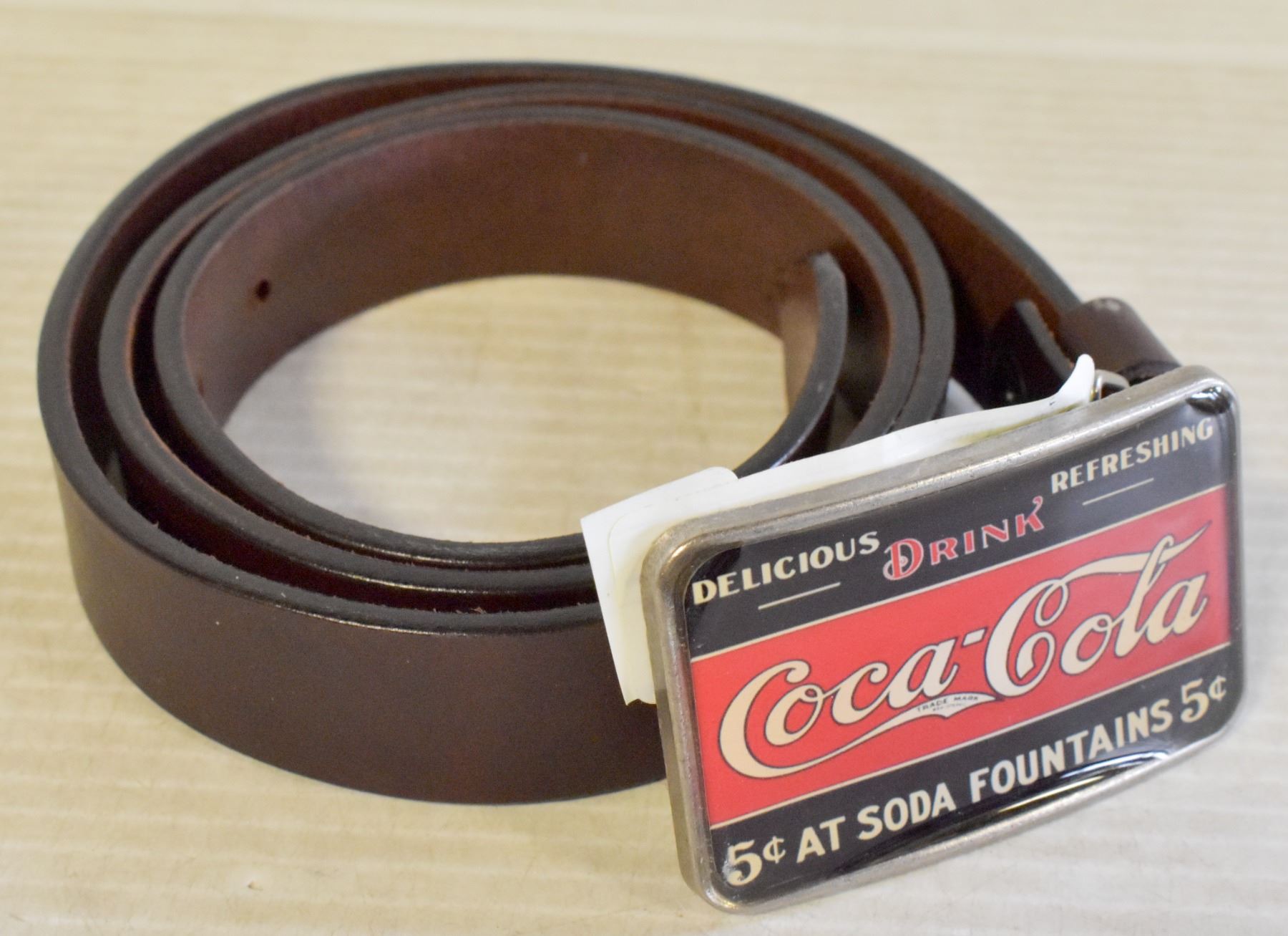 COKE BELT BUCKLE - WITH SIZ 38 LEATHER BELT