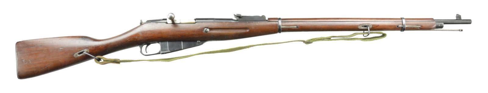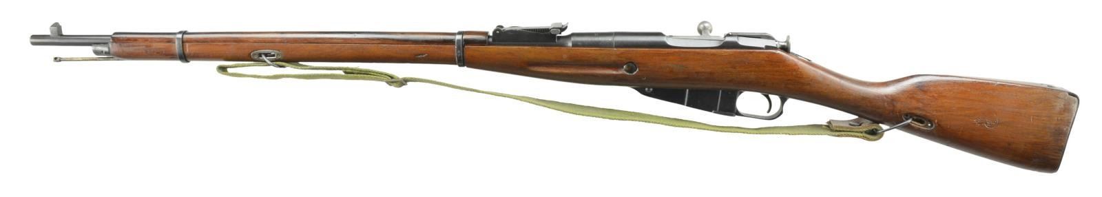 BOLT ACTION RIFLE FROM THE SPANISH CIVIL WAR. Cal. 7.62x54R. S# 12043 (1937).The rnd. receiver is marked "MADE IN / USSR" & the left side of the buttstock is marked "MP / 8" w/in a flaming bomb proof indicates this rifle was sent to Spain to help the Republicans during the Spanish Civil War, then was inventoried by the Franco Nationalists after the war ended. Bbl. 28.7" w/ tall blade front sight & 2,000m tangent rear sight. Mismatched numbers throughout. Hardwood stock set w/ green web sling &* sling swivels. UNATTACHED ACCESSORIES: 19.5" overall socket spike bayonet in good condition. Consignor states bayonet was used during the Spanish Civil War & purchased in Barcelona at Xavier Andreu's (Historian & Author) military shop. CONDITION: Very good arsenal refinished condition. w/ wear & moderate handling marks. 1 Missing sling slot escutcheon. Good bore w/ strong rifling. (22-713/MD). CURIO. $300-500.