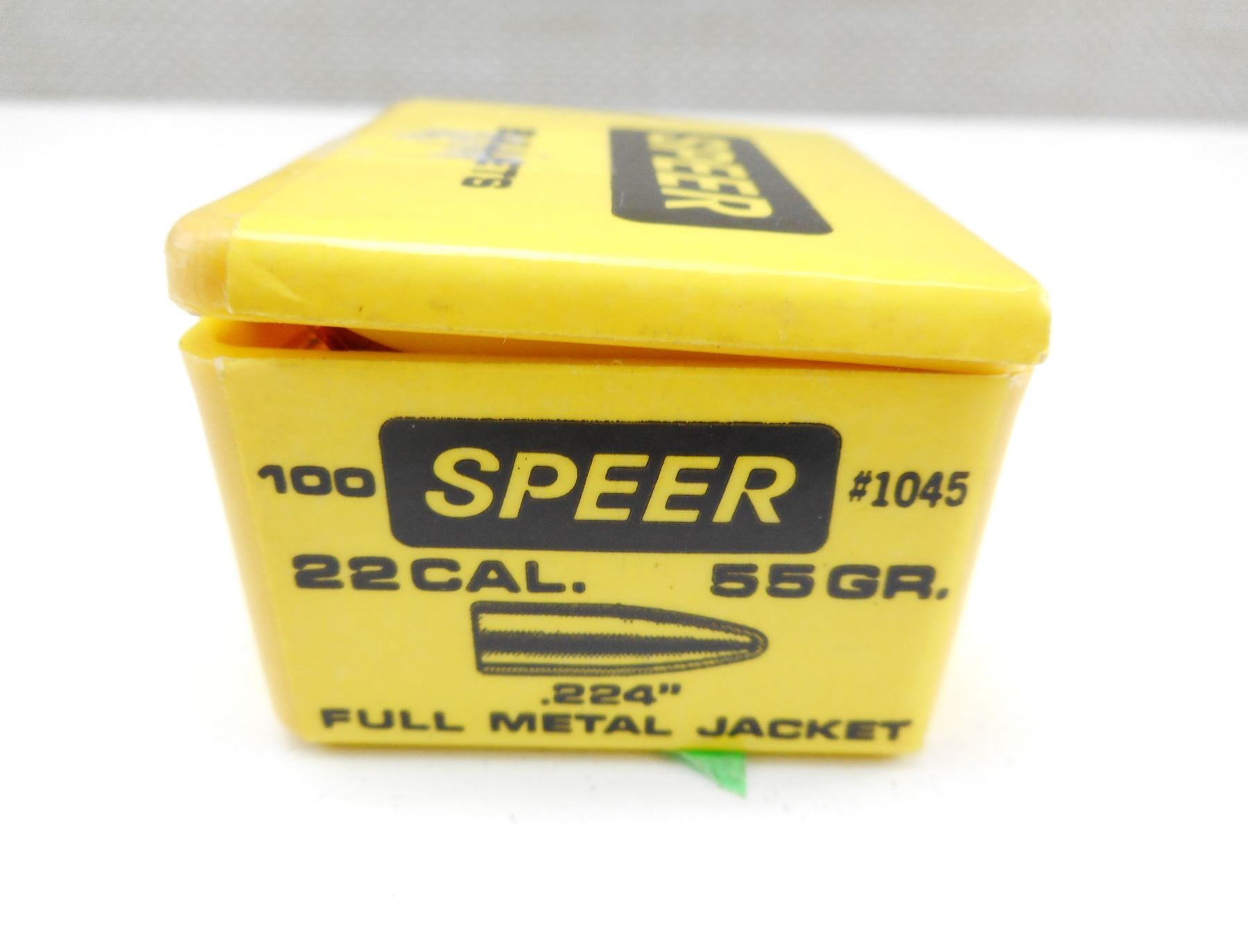 SPEER 22 CAL. .224" 55 GRNS BULLETS , 100 SPEER 22 CAL. .224", 55 GNRS, FULL METAL JACKET BULLETS