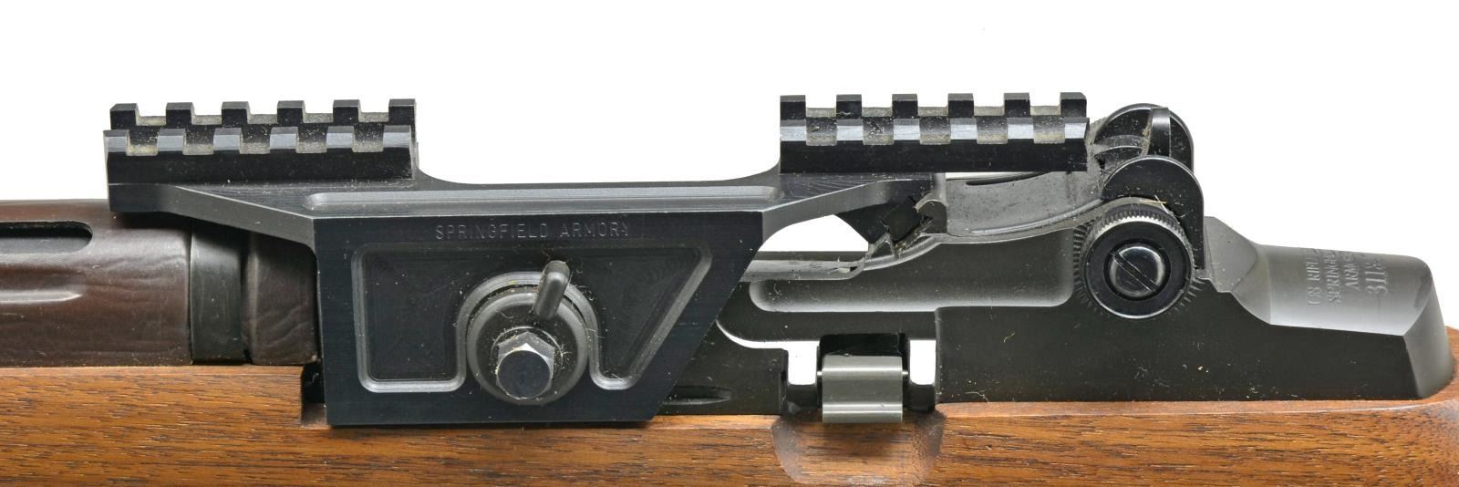 Cal. 308 Win. S# 311847. Bbl. 25" including flash suppressor. Bbl. is marked “SPRINGFIELD GENESEO IL”. Aperture rear sight adj. for windage & elevation. Blade front sight w/ protective ears marked on left side “NM 062”. Cage type flash suppressor, made w/ out bayonet lug. Rifle is equipped w/ 4th generation scope mount w/ picatinny rails marked “SPRINGFIELD ARMORY”. Walnut stock w/ fiberglass handguard. UNATTACHED ACCESSORIES: Springfield Armory marked military-style sling. CONDITION: all aspects, including bore, are very good to near excellent w/ very light high point wear. (20-2538/RW). MODERN. $800-1,200.
