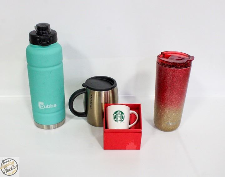 STARBUCKS/DAVIDS TEA/BUBBA MUGS AND TUMBLER