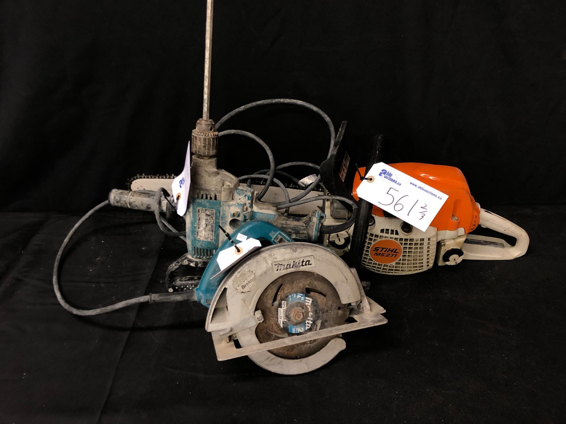 STIHL MS271 GAS CHAIN SAW, MAKITA DRILL, AND MAKITA CIRCULAR SAW (3 PIECES)