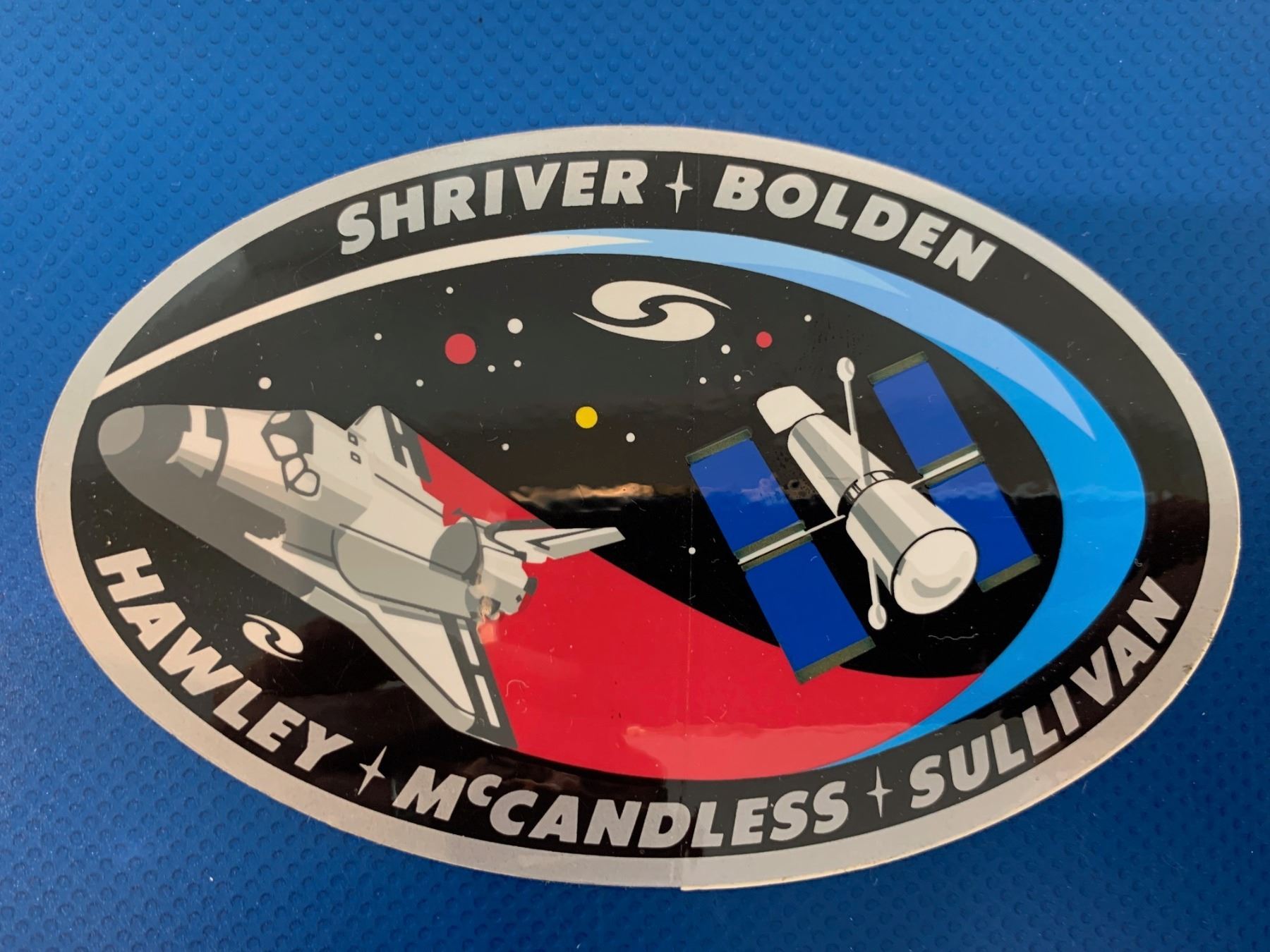 The mission insigna for sts-31 features the hubble space telescope in its observing configuration against a backround of the universe it will study. The cosmos includes a stylistic depiction of galaxies in recognition of the contribution made by Sir Edwin Hubble. The Space Shuttle trails a spectrum symbolic of both the red shift observations that wee so important to Hubbles work and the new information that will be obtained with HST. Encircling the scene are the names of STS-31 crew members: Commander Loren Shriver, Pilot Charlie Bolden, Mission Specialist Steve Hawley, Bruce McCandless and Kathy Sullivan. This patch was designed by the STS-31 Crew.