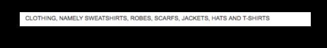 INCLUDING CLOTHING, NAMELY SWEATSHIRTS, ROBES, SCARFS, JACKETS, HATS, AND T-SHIRTS