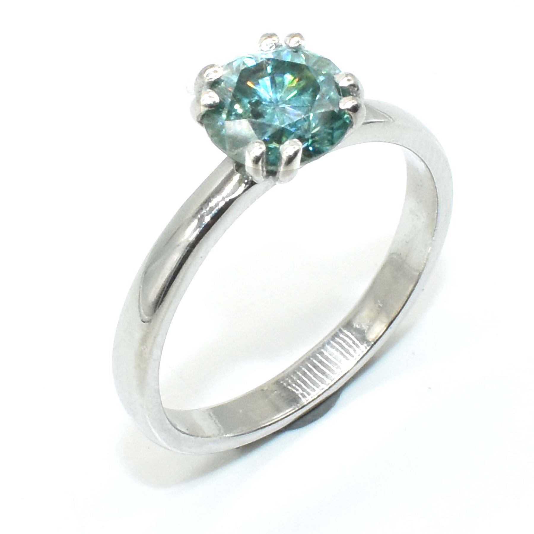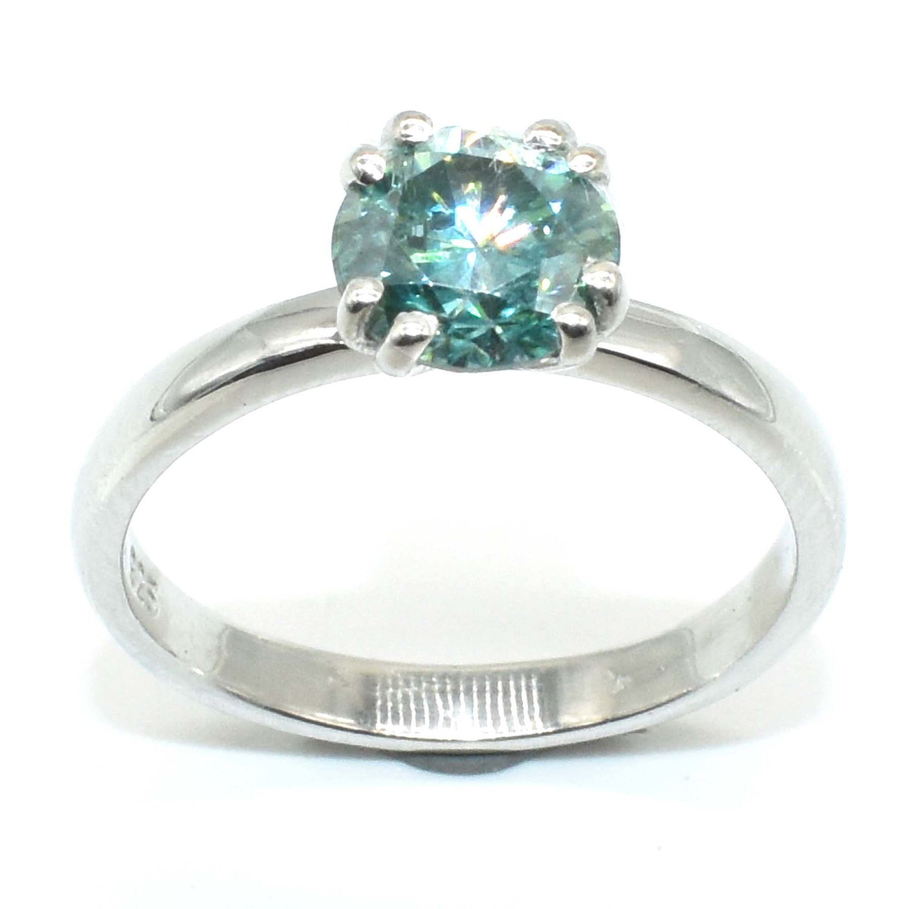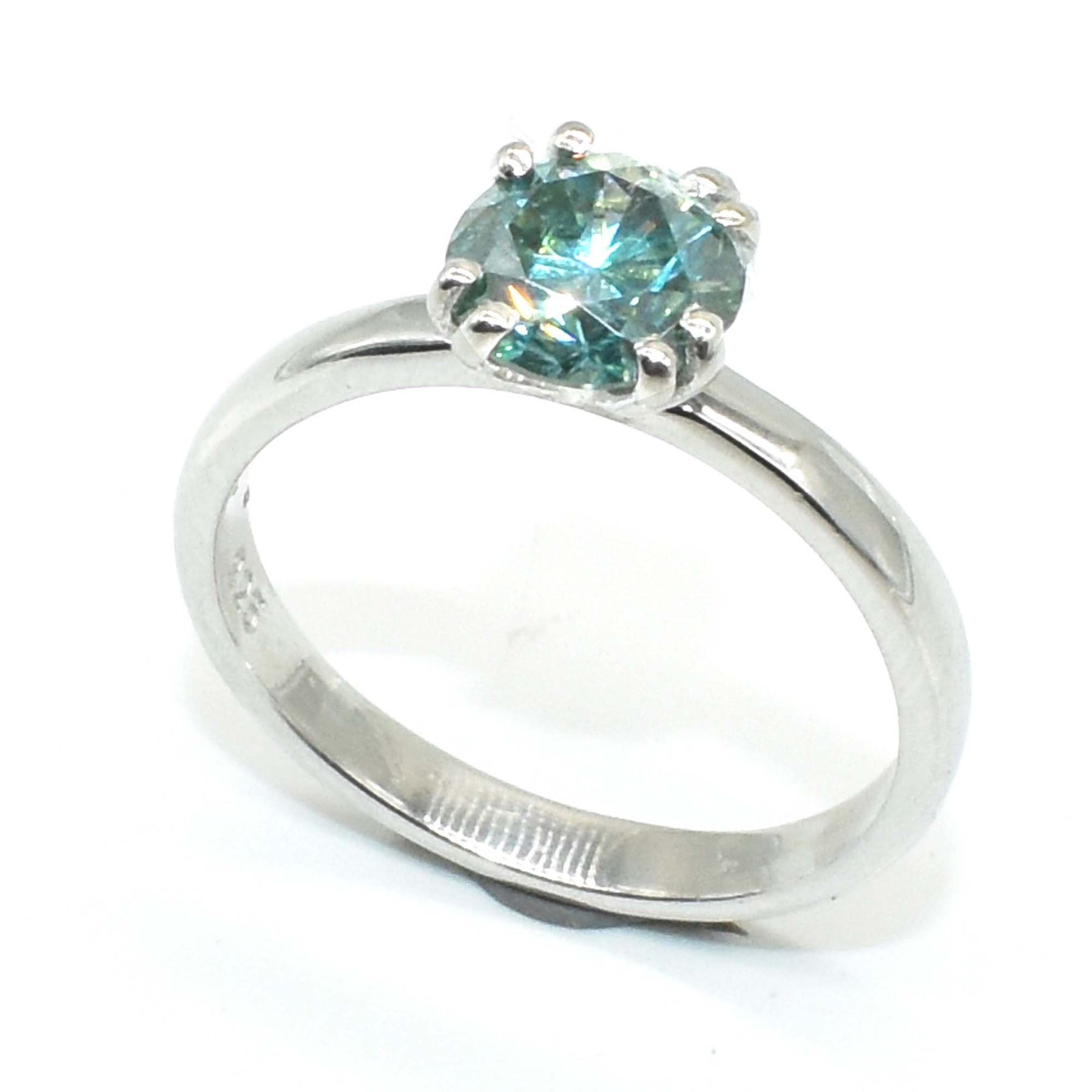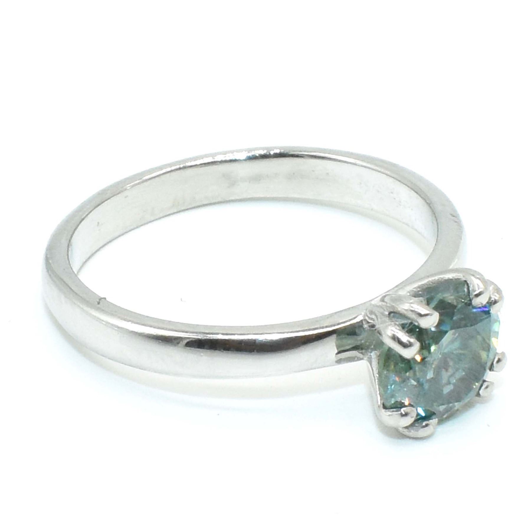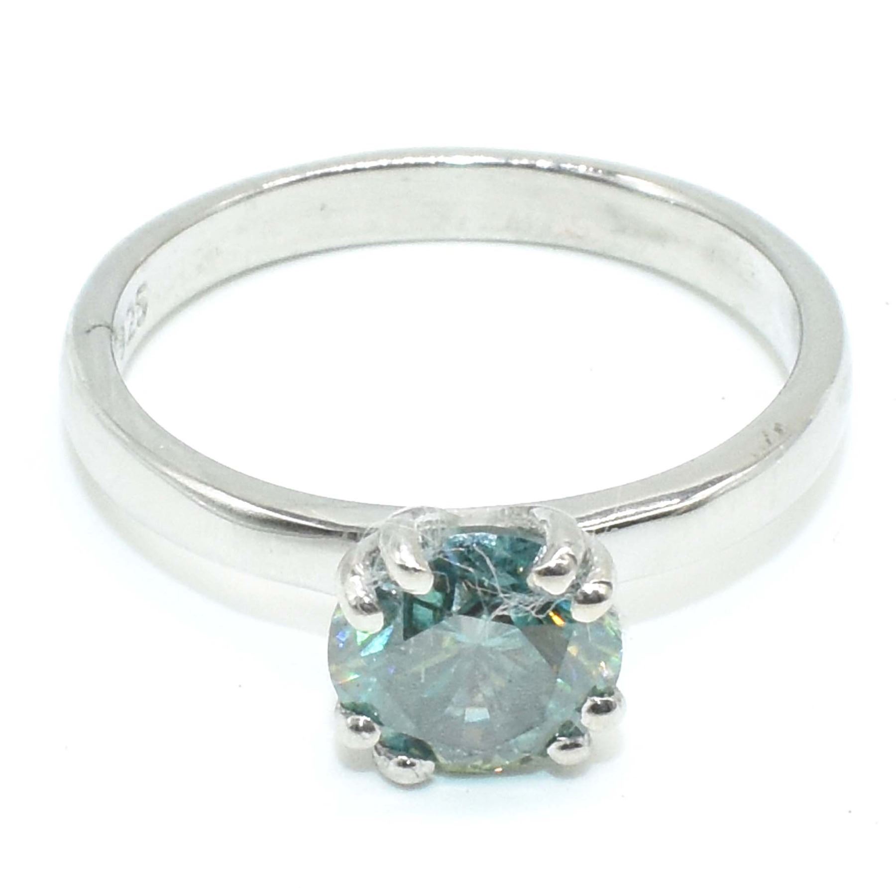 SILVER MOISSANITE (ROUND 6.5X6.5 MM)(0.99CT) RHODIUM PLATED TEST AND LOOKS BETTER THAN DIAMOND RING (~WEIGHT 2.35G)