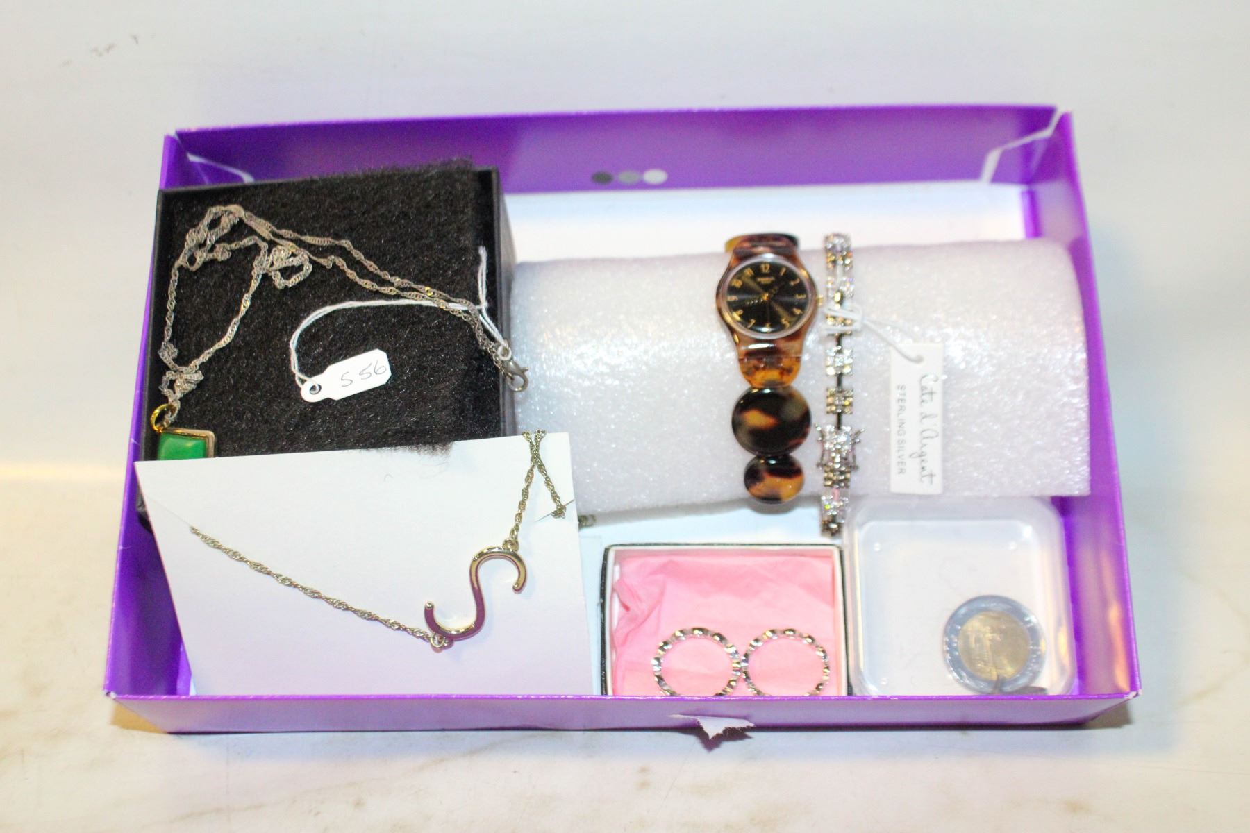 (FITS SM-MED), WORKS JUST NEEDS BATTERY. STERLING CZ BRACELET, VINTAGE COSTUME JEWELRY