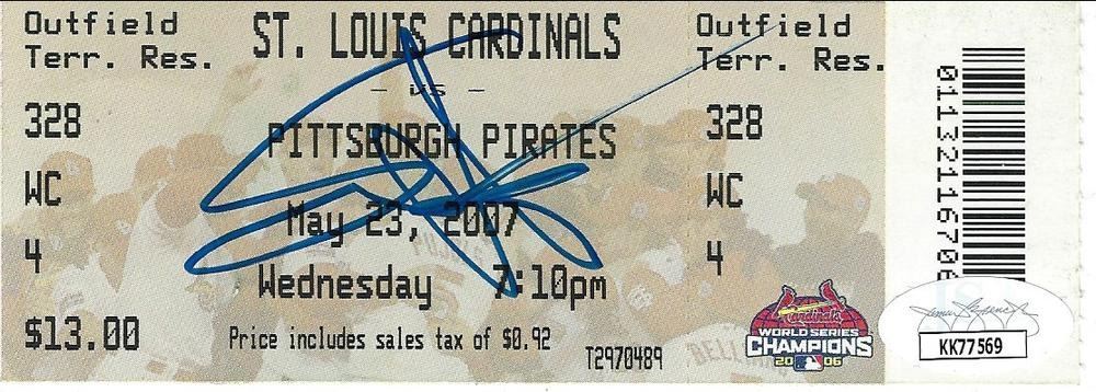 Sammy Hagar signed ticket. Ticket is from St Louis Cardinal vs Pittsburgh Pirates game on May 23 2007. JSA authenticated. 2x5 inches