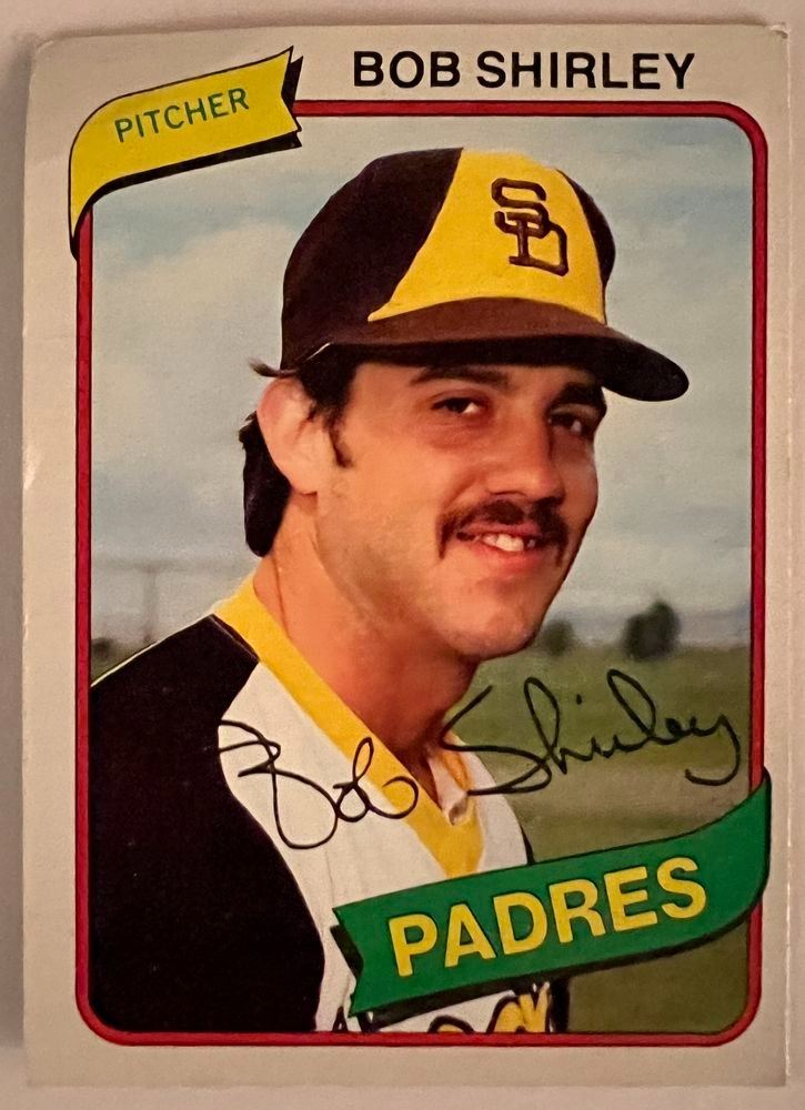 San Diego Padres Bob Shirley baseball trading card. 2x3 inches
