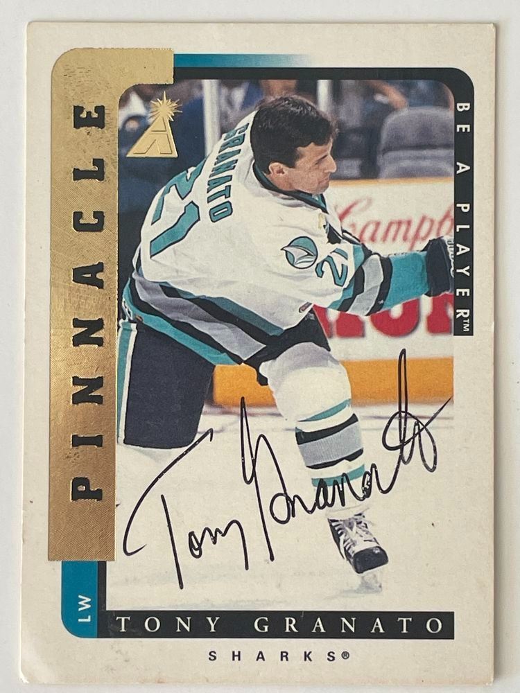 San Jose Sharks Tony Granato 1997 Pinnacle #142 signed trading card. 2x3 inches