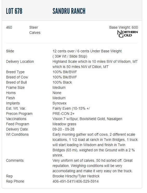 Sandru Ranch - 460 Steers; Base Weight: 600