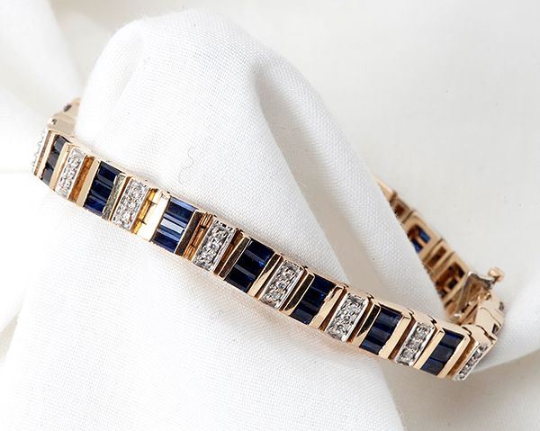 Sapphire, Diamond, 14K Yellow Gold Bracelet