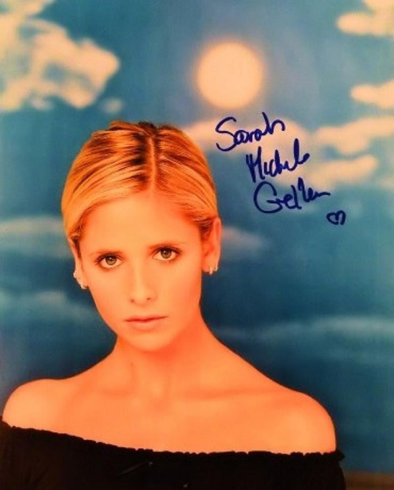 8 in. by 10 in. Portrait photo autographed by Sarah Michele Gellar as Sarah Michele Gellar with a heart.