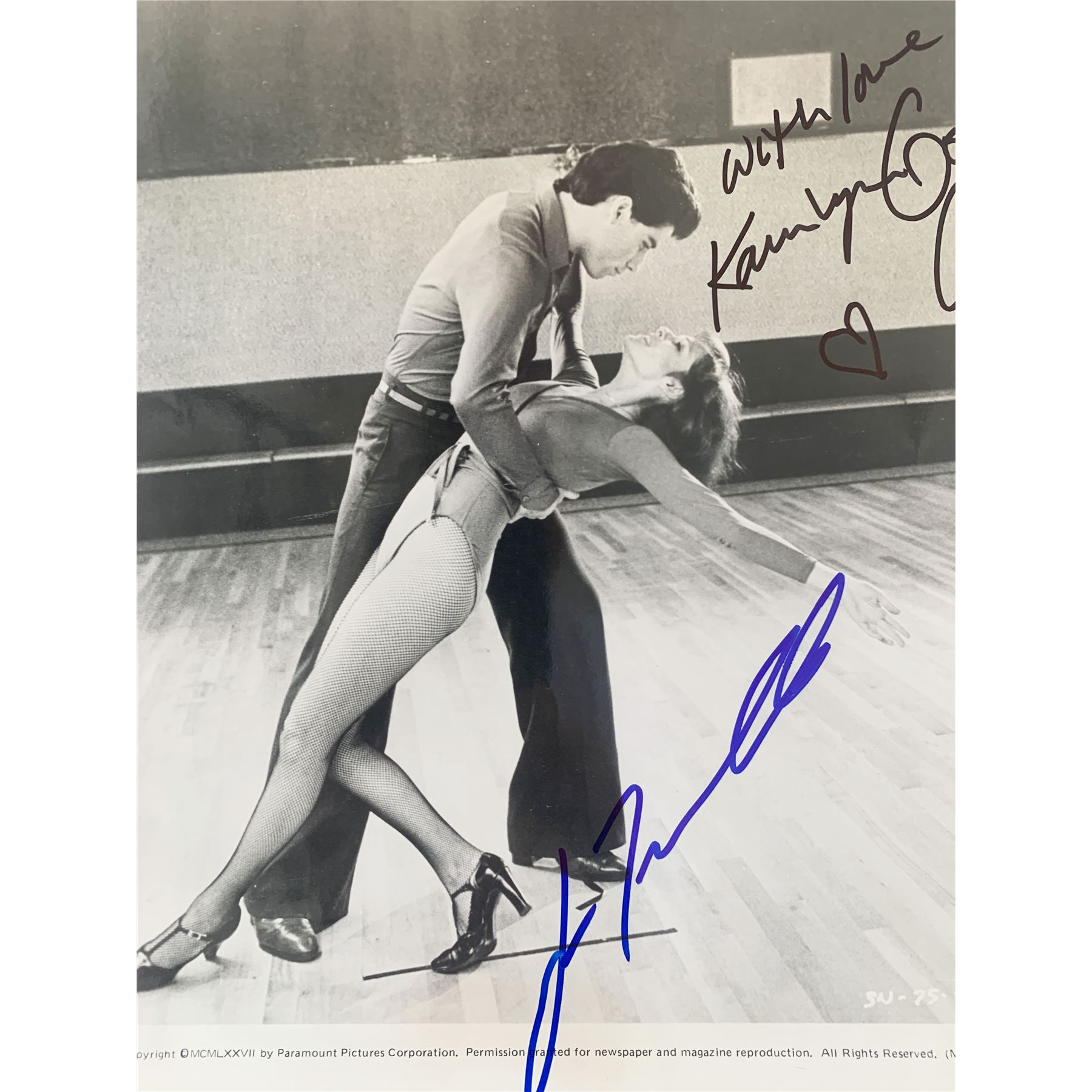 Saturday Night Fever signed movie photo autographed by John Travolta and Karen Lynn Gorney. 8x10 inches