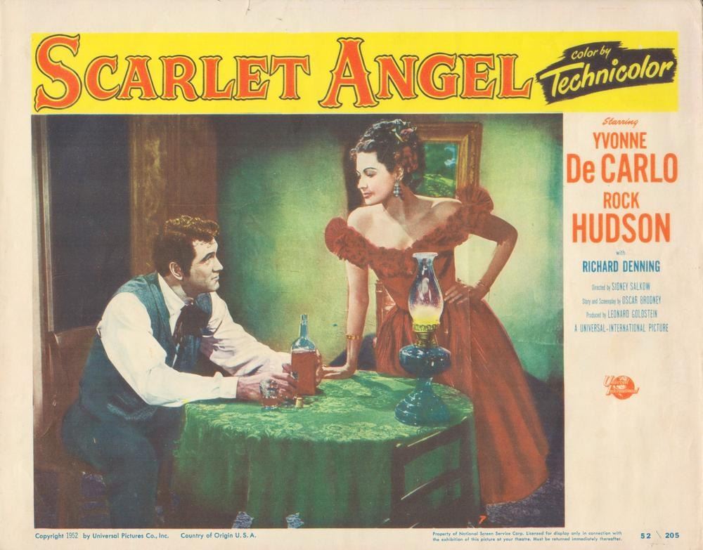 Scarlet Angel 1952 original vintage lobby card on heavy card stock. 11x14 inches