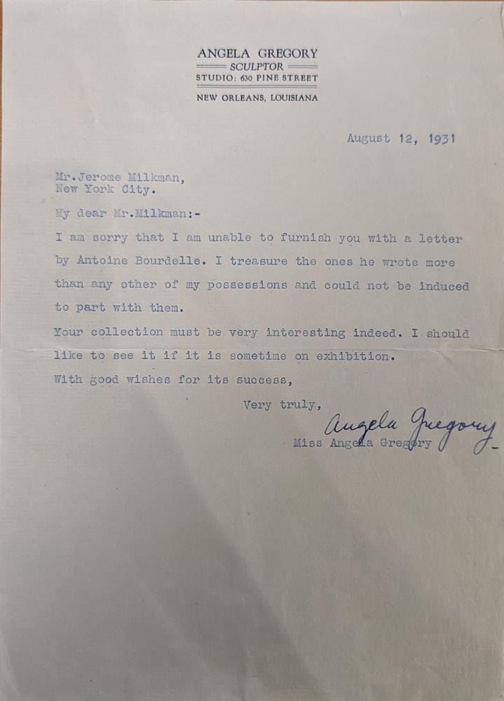 Sculptor Angela Gregory Signed Letter. 7x10 inches