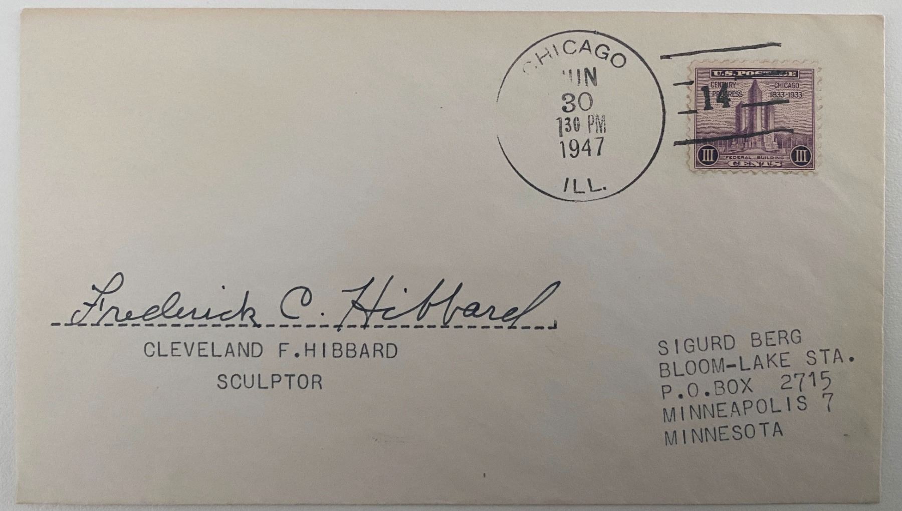 Sculptor Frederick Hibbard signed envelope. 3x6inches