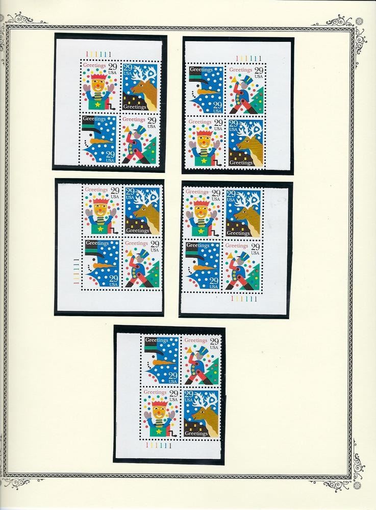 Season's Greetings stamps 3 plate blocks 20 x 29 cent stamps