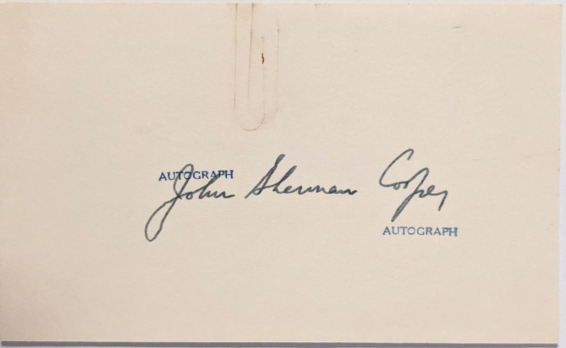 Senator John Sherman Cooper autograph. 3 x 5 inches.
