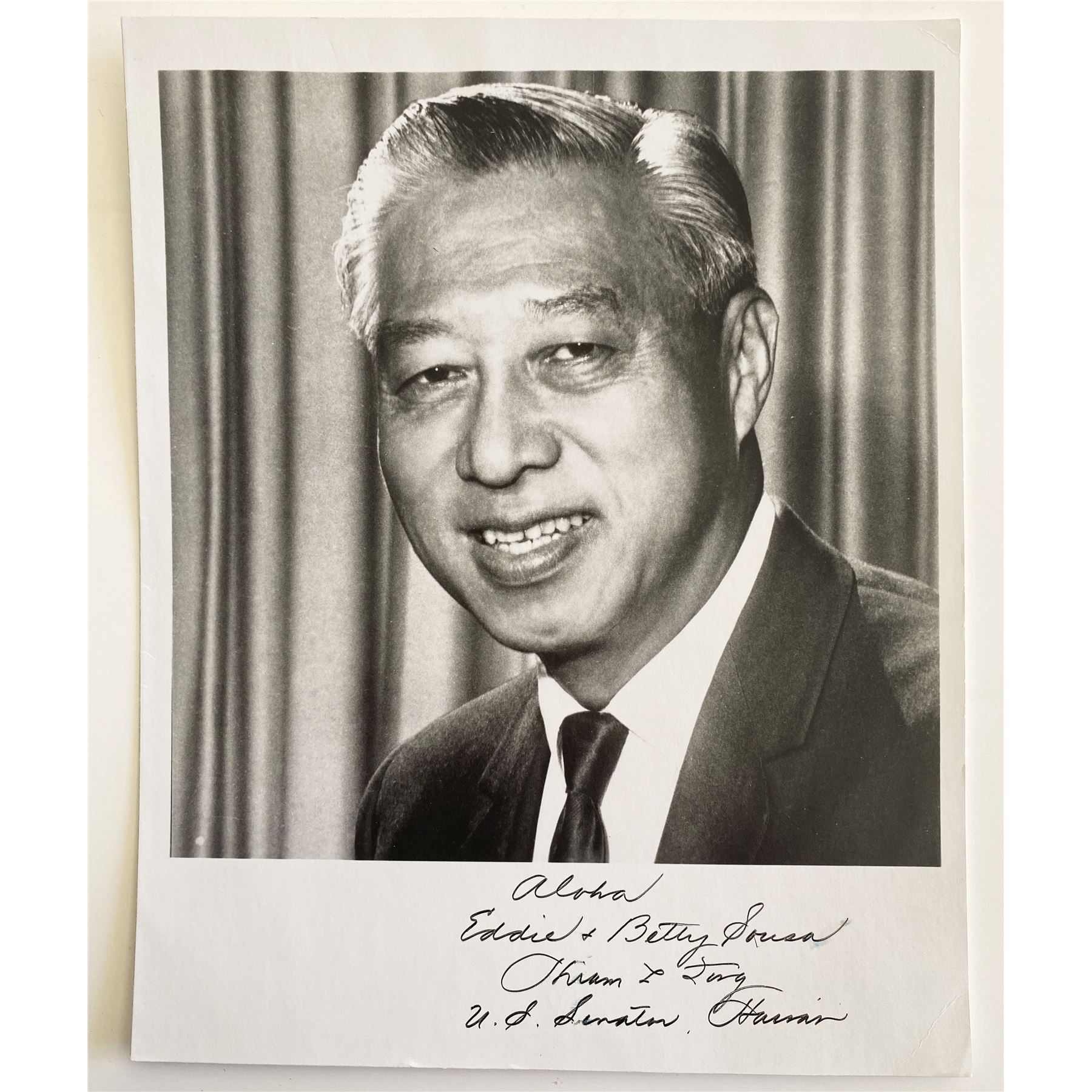 Senator of HI Hiram Fong signed photo. 8x10 inches