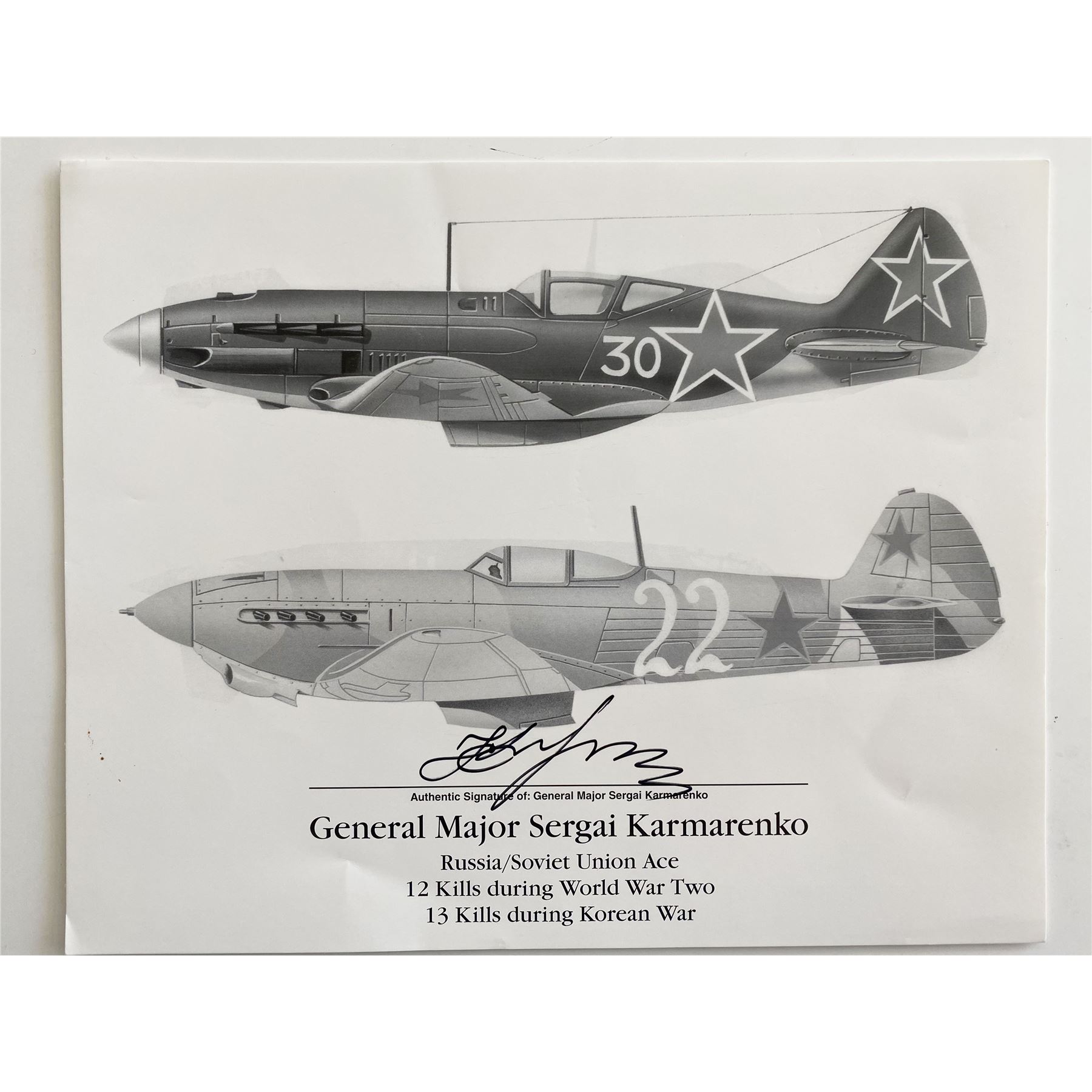Sergei Kramarenko signed WW2 & Korean War plane art. 8x10 inches