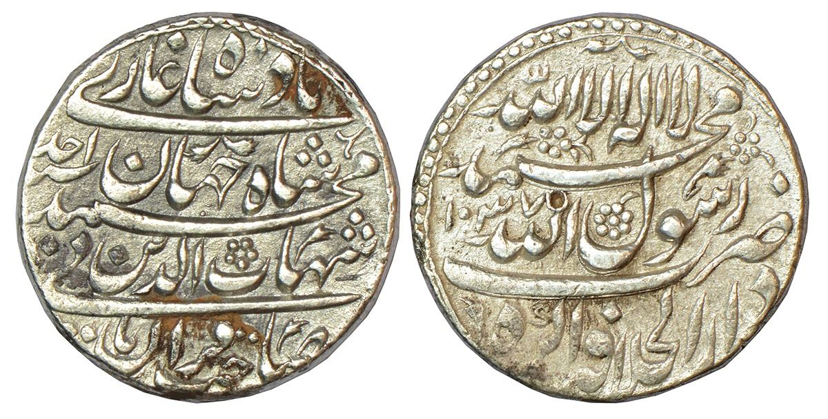 Shah Jahan (1628-1658 AD), silver rupee, Dar ul-Khilafat Agra mint, AH 1037/RY Ahd, KM 222.1, 11.39g. Obv: Emperor's full name and title in four lines. Rev: Kalima, date and mint name in three lines.