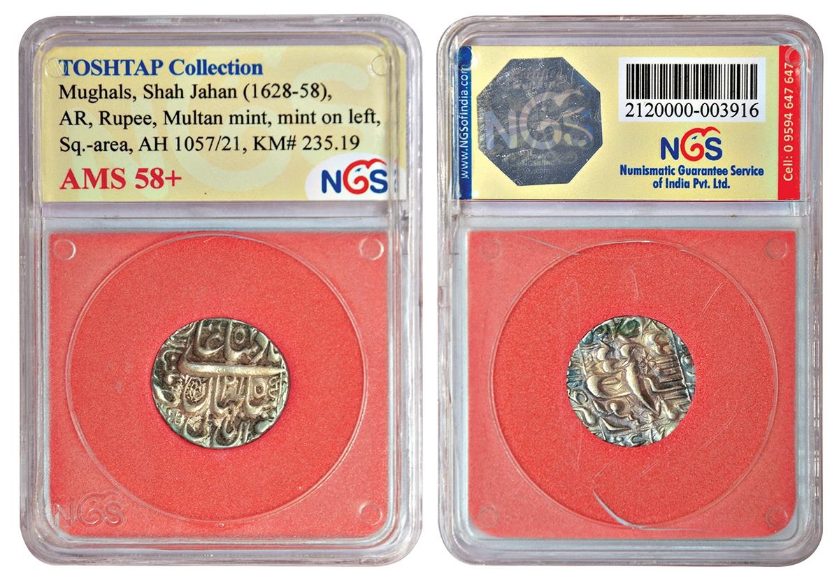 Shah Jahan (1628-1658 AD), silver rupee, Multan mint in left quadrant, AH 1057/RY 21, KM 235.19.