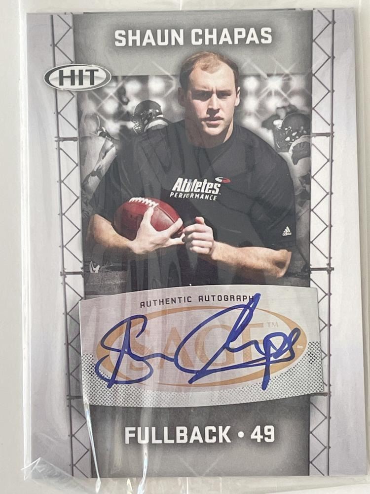 Shaun Chapas signed 2011 Sage Hit #29 trading card. 2x3 inches