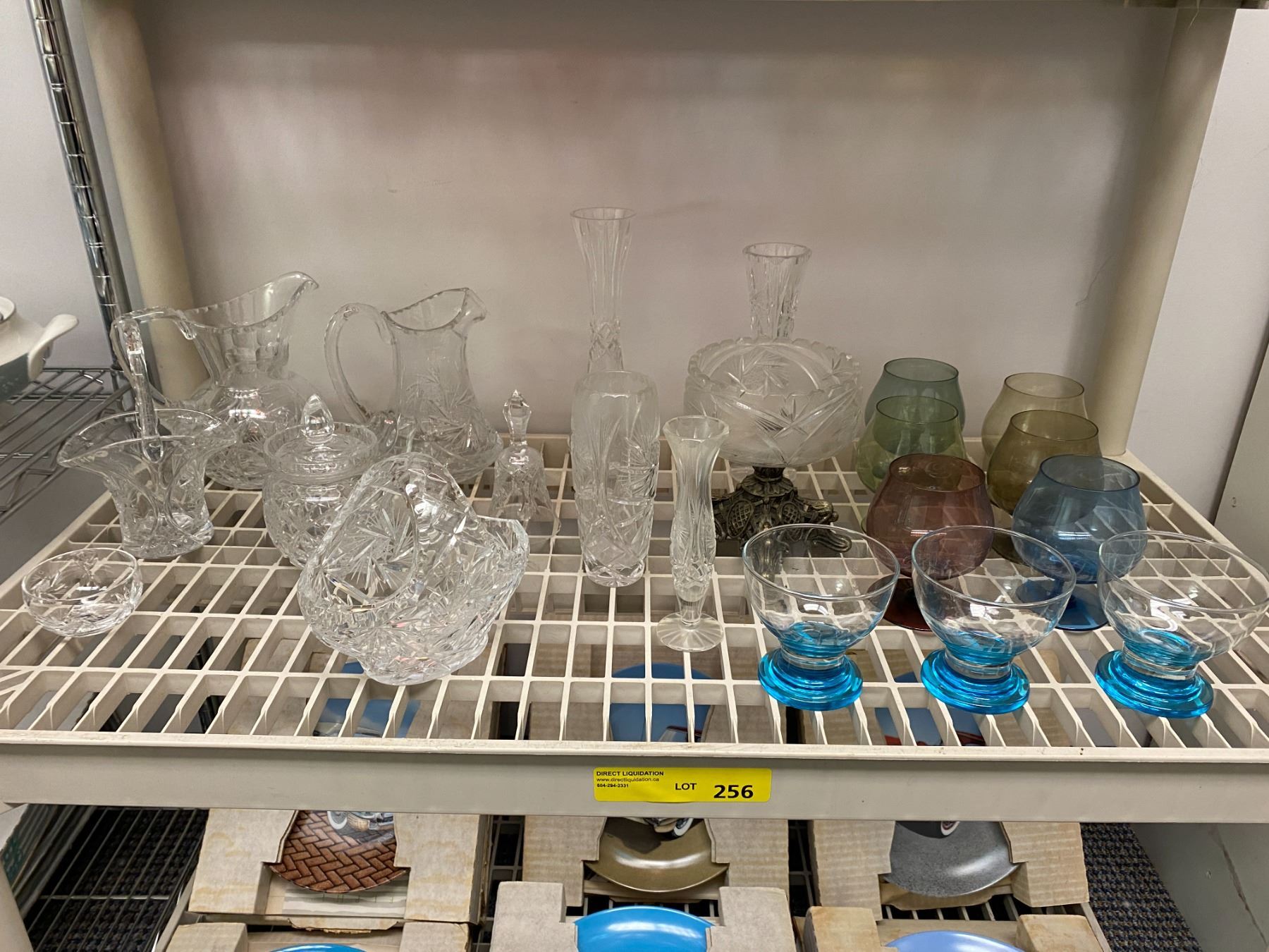 Shelf Lot of Mostly Cut Crystal pieces and glass wear - approx. 22 pieces