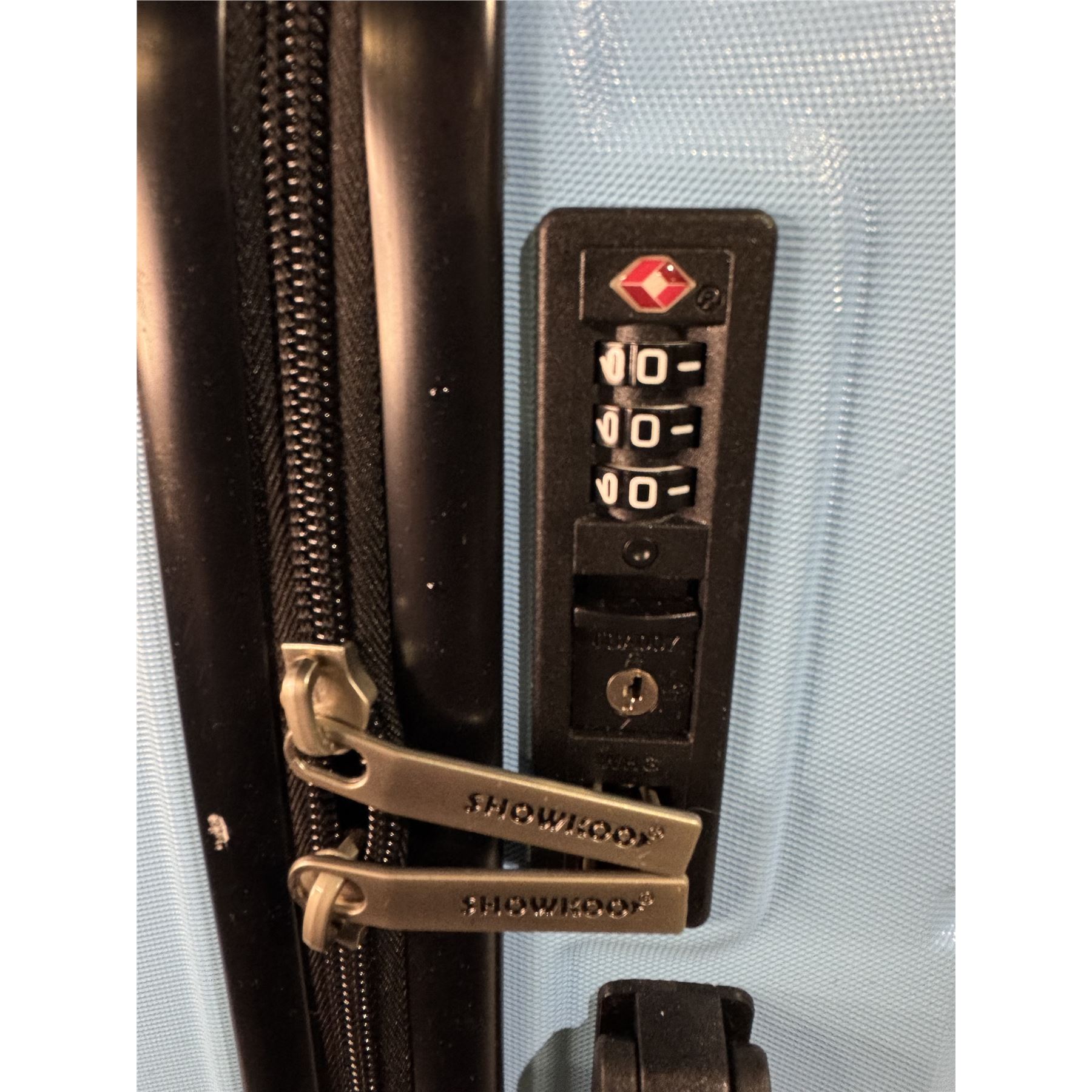 Luggage is small, not full size. Approx 16 inches tall and 19 inches tall - one side of the zipper on bigger one is broken, but the other half zips fully. Lock combos are both 0-0-0