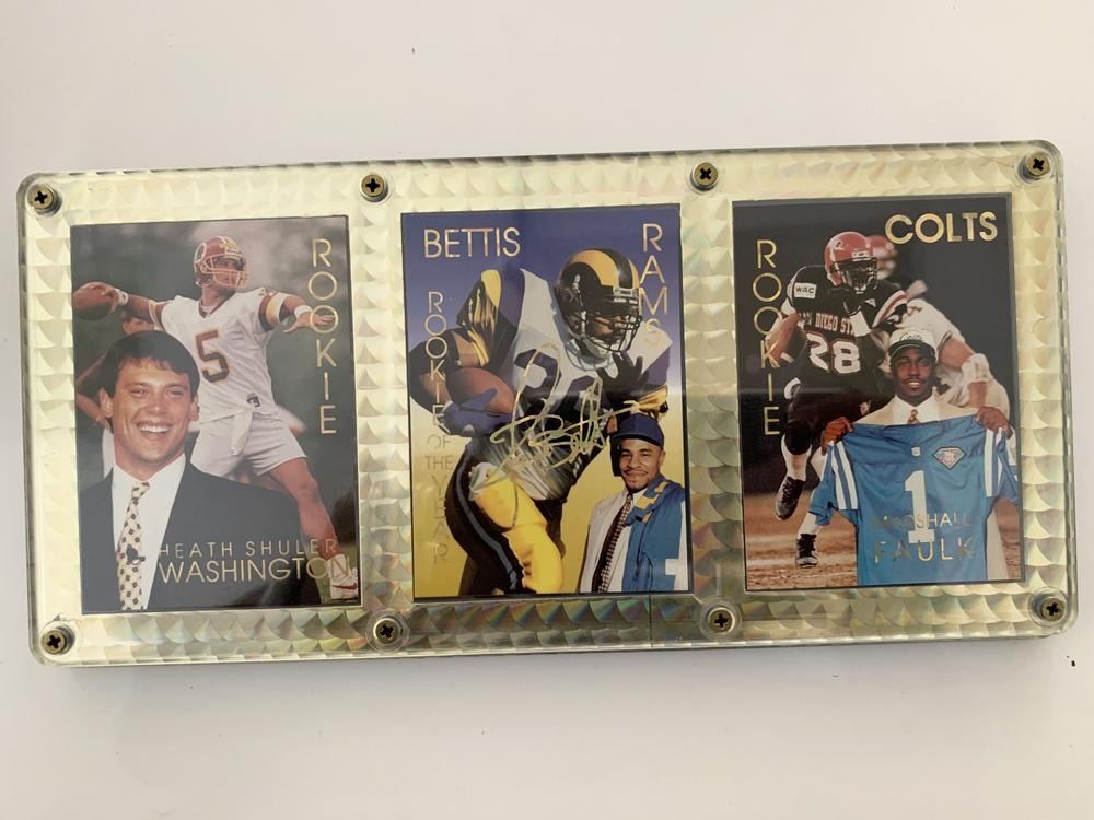 Heath Shuler, Jerome Bettis (Facsimile Signed) & Marshall Faulk NFL Rookie Framed Football Card Set.