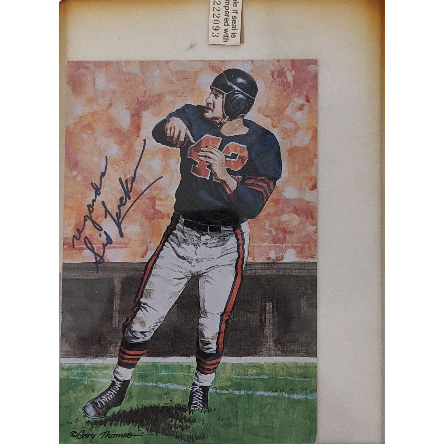 Sid Luckman Unsigned Chicago Bears 1989 Goal Line Art Card from the original Gary Thomas art work. 4x6 inches