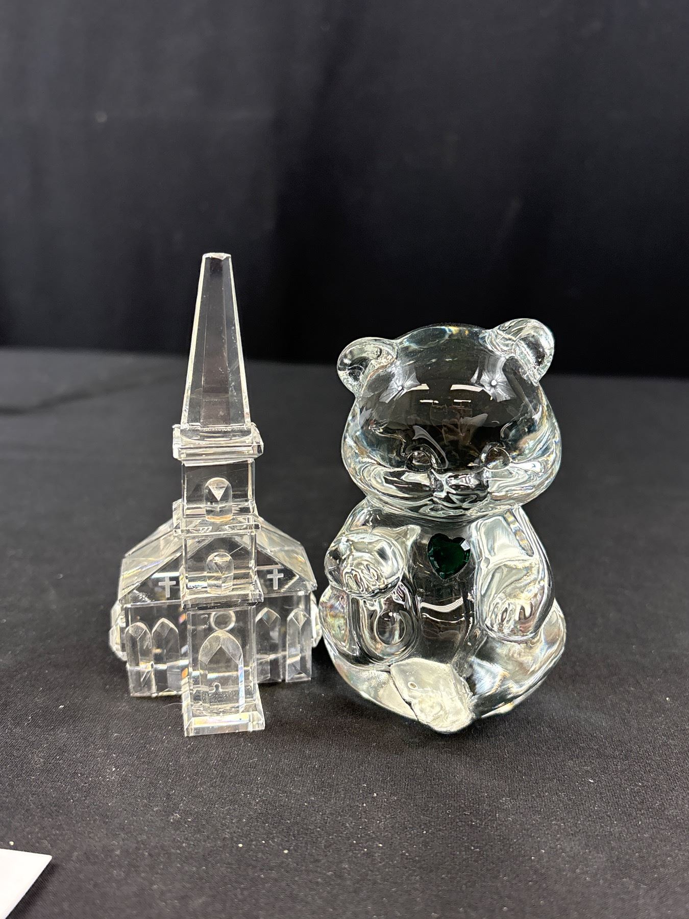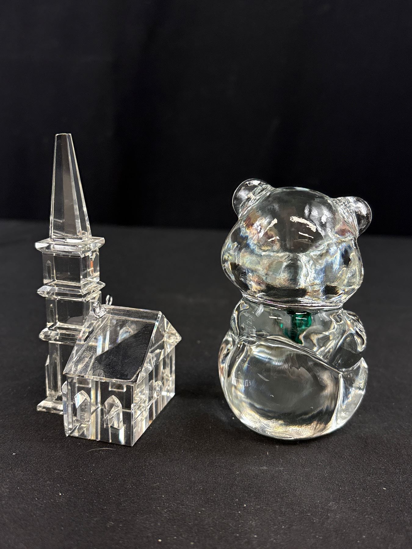 Signed Fenton Crystal Bear, Crystal Church & Cat Figure