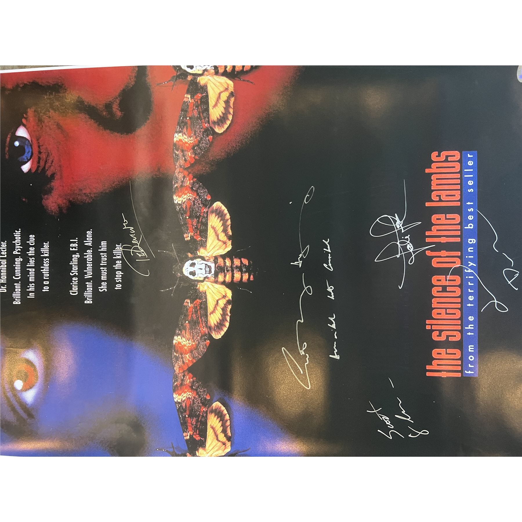 Silence Of The Lambs cast signed poster autographed by Anthony Hopkins, Jodie Foster, Scott Glenn, Ted Levine and Jonathan Demme. 24x37 inches