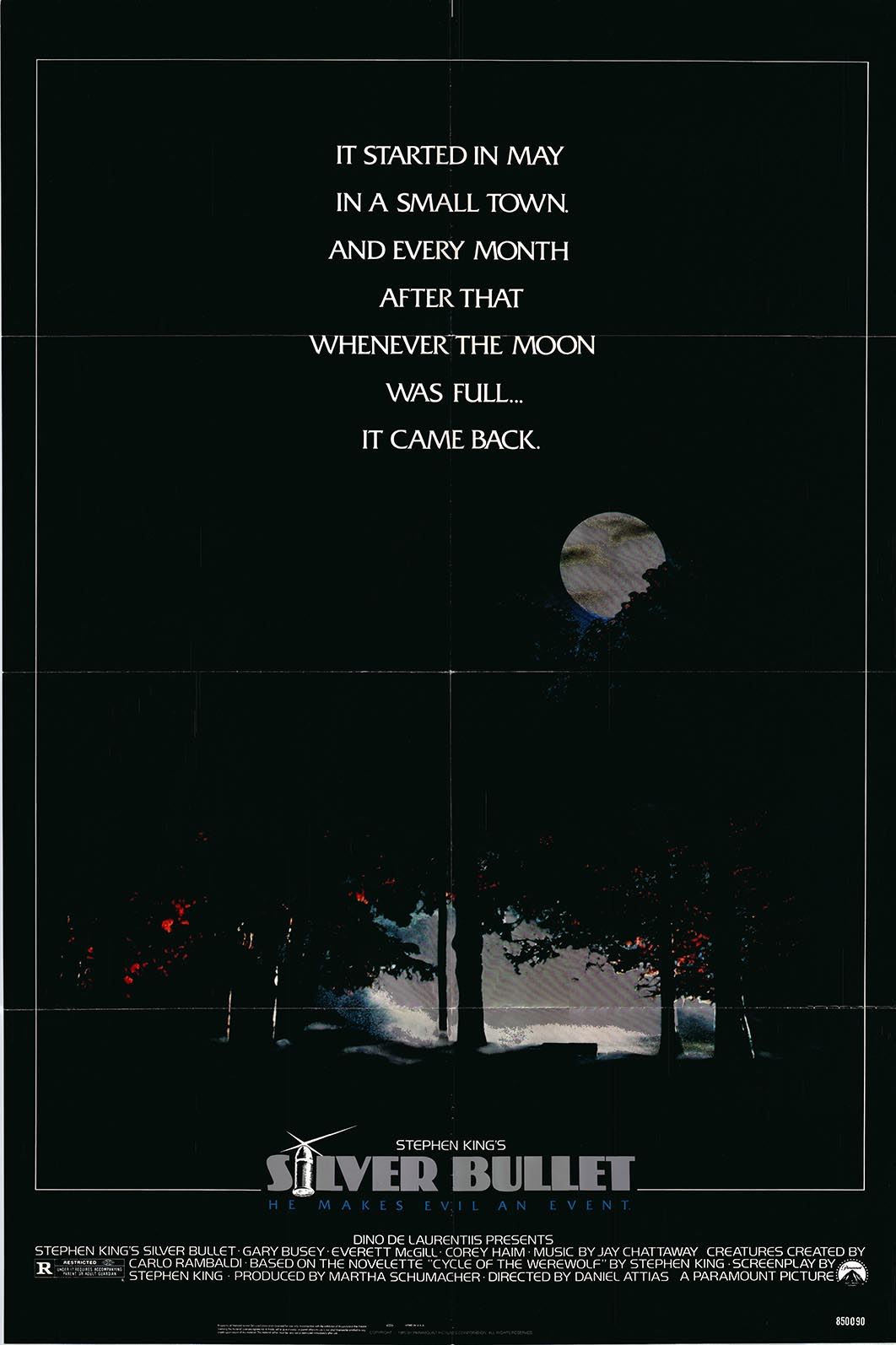 Silver Bullet original 1985 vintage one sheet movie poster. Folded. 27X41 Inches