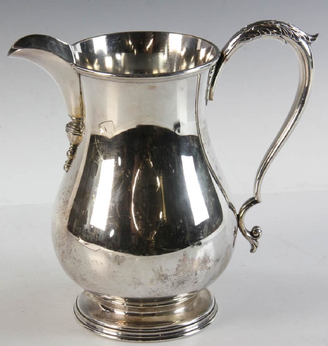 Silverplate pitcher, 10" x 9 1/2". Provenance: Beverly, Massachusetts estate.