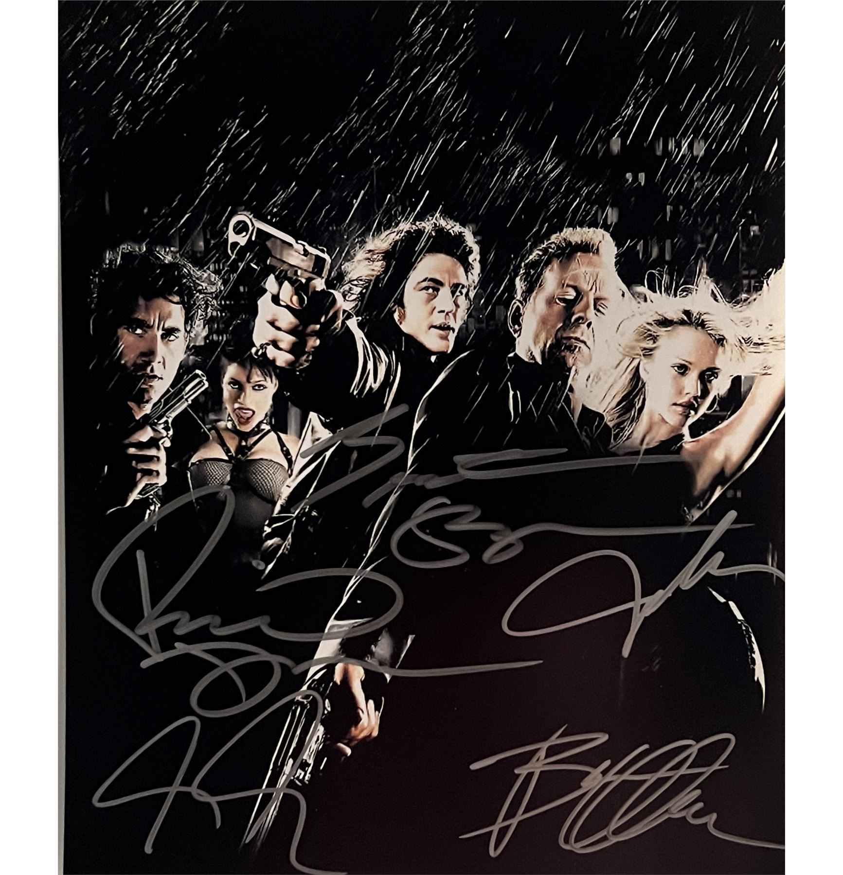 Sin City cast signed photo autographed by Bruce Willis, Benicio Del Toro, Jessica Alba, Rosario Dawson and Clive Owen. 8x10 inches