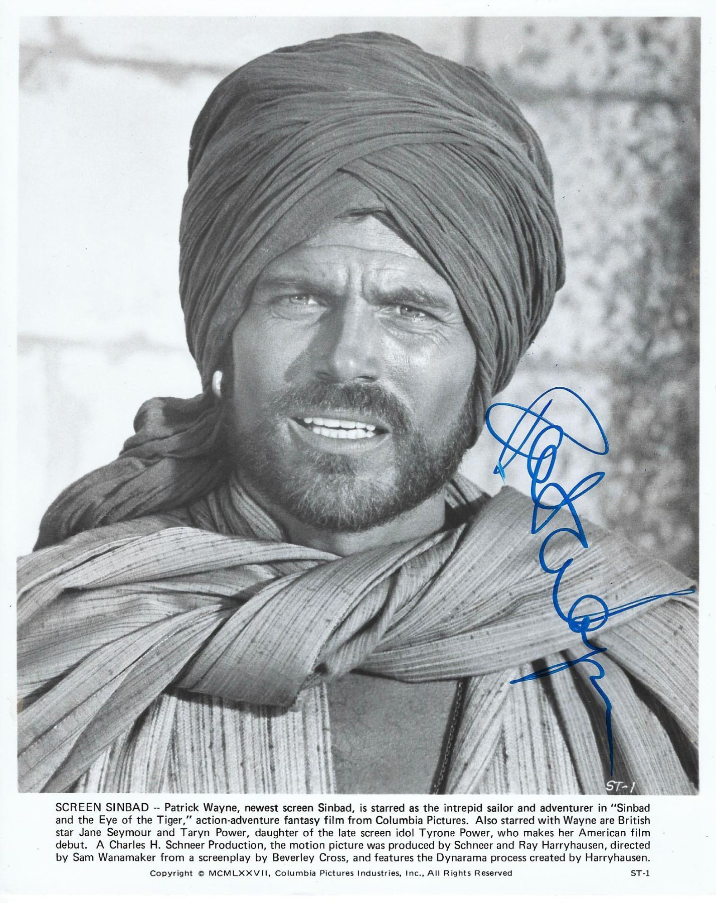 Sinbad and the Eye of the Tiger signed movie photo autographed by Patrick Wayne. 8x10 inches